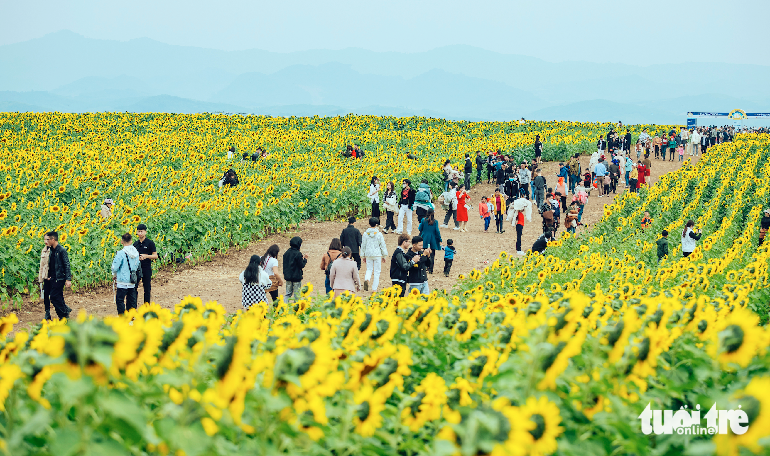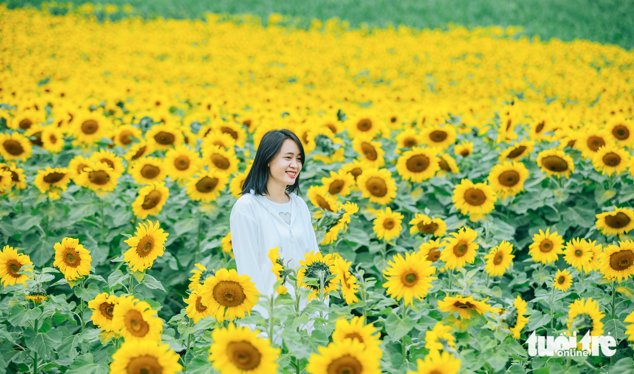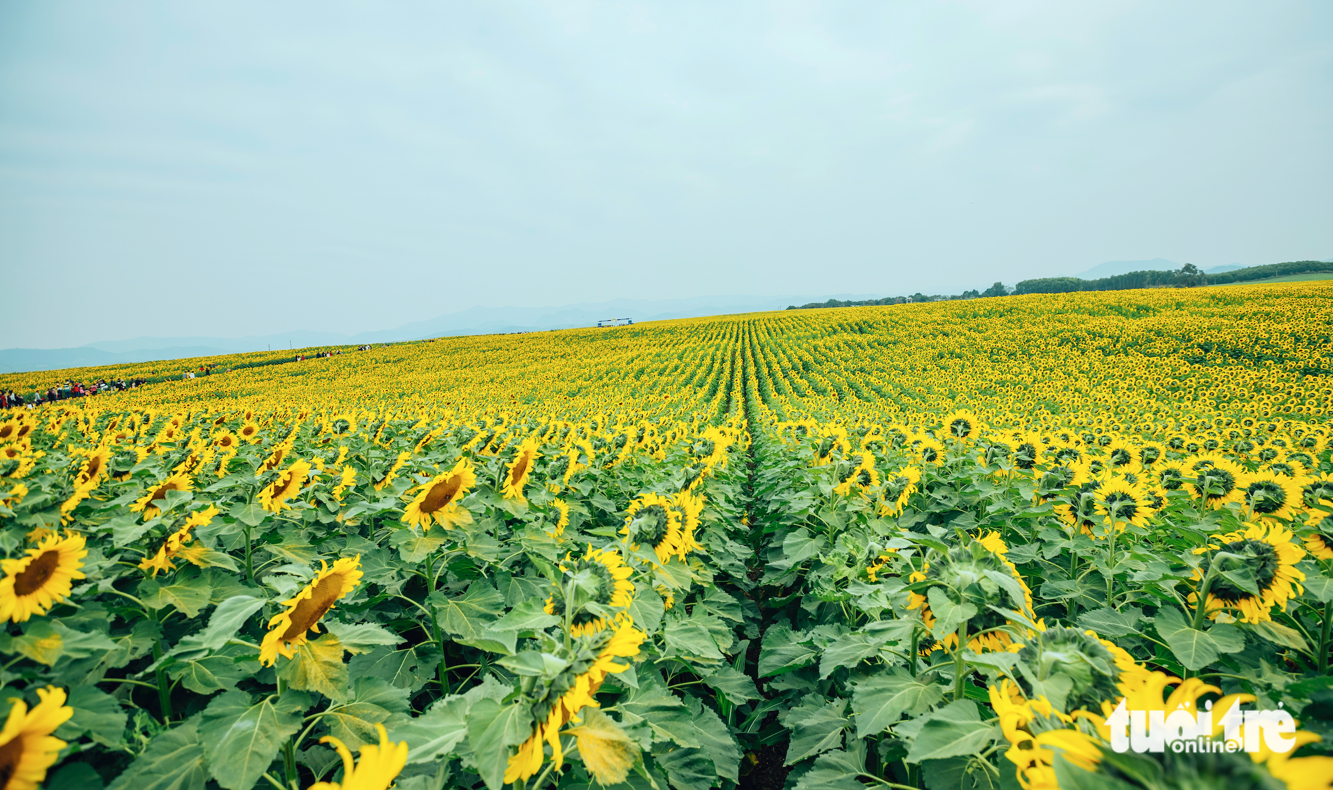 For dozens of hectares, millions of golden sunflowers bloomed across the field, offering limitless photo opportunities for visiting tourists.