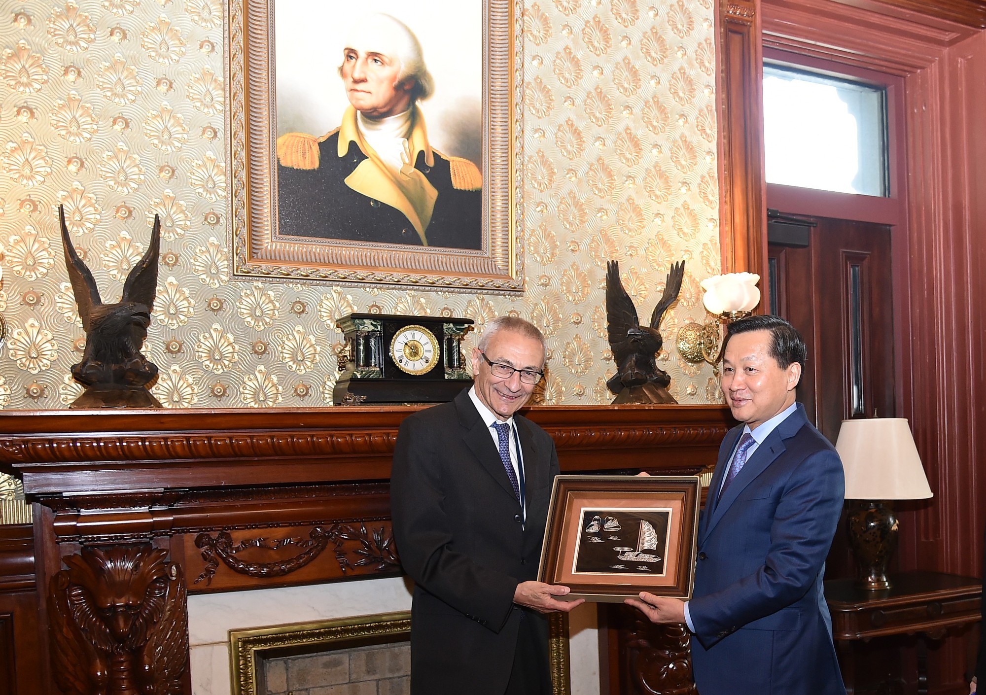 Ông Podesta cho biết Hoa Kỳ sẽ tiếp tục tăng cường hỗ trợ Việt Nam ứng phó với biến đổi khí hậu, đặc biệt trong phát triển năng lượng sạch, hạ tầng lưới điện bền vững, chuyển giao công nghệ năng lượng tái tạo.