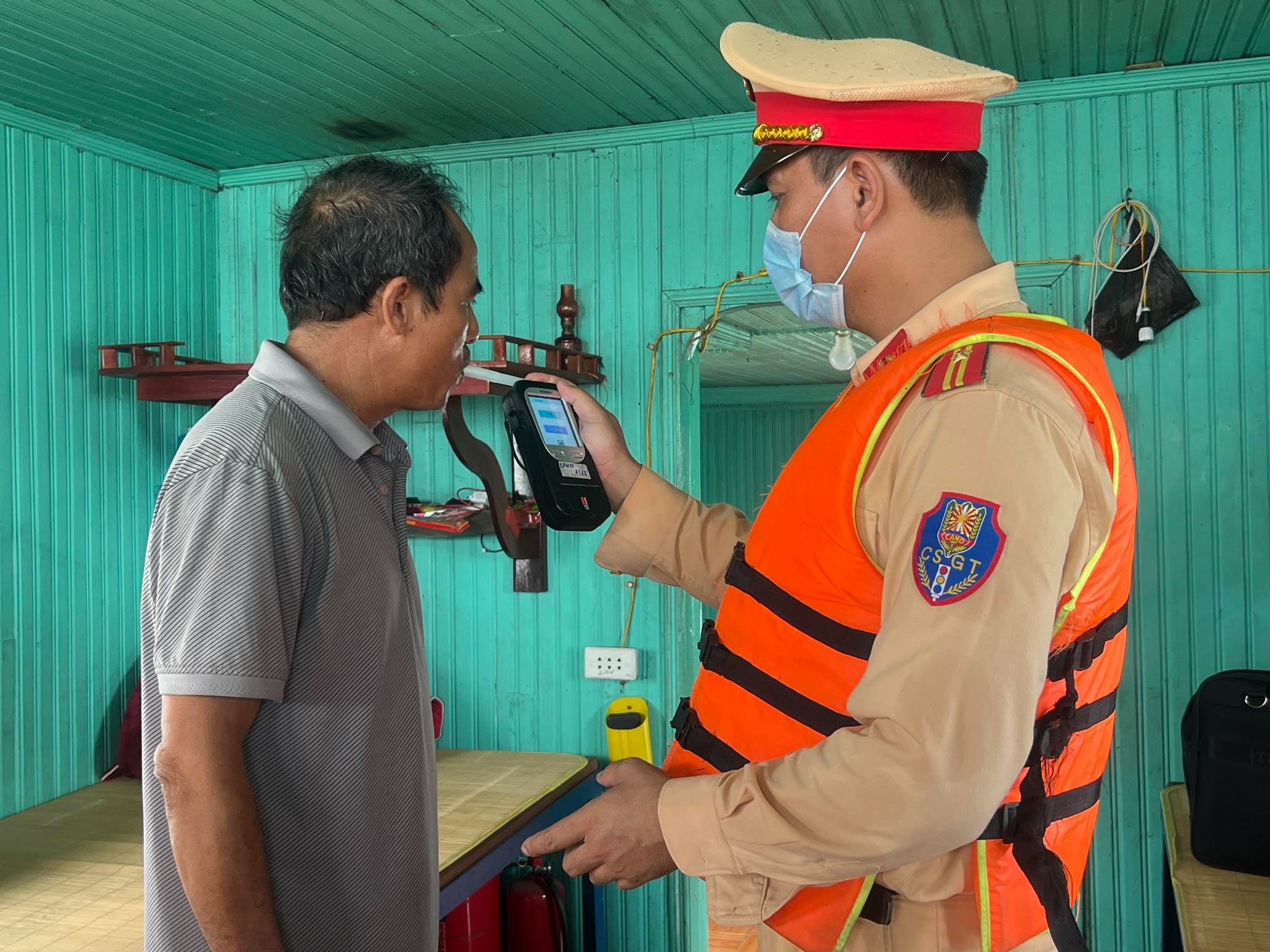 Lực lượng chức năng kiểm tra nồng độ cồn đối với các chủ phương tiện tàu thủy.