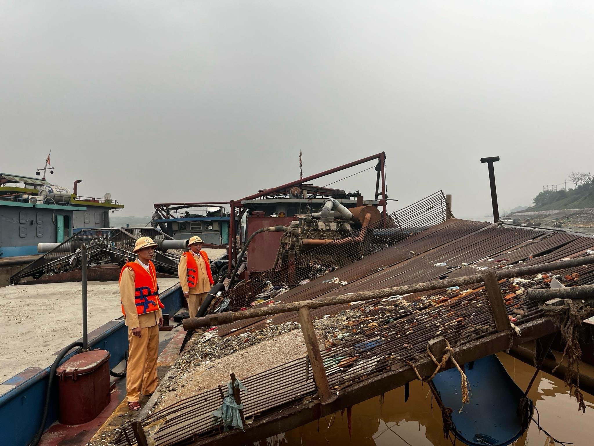 Khi tổ công tác áp sát phương tiện để kiểm tra, thấy trên tàu có 02 đối tượng đang vận hành hệ thống đầu nổ, ống hút để hoạt động khai thác cát. Ban đầu xác định các đối tượng là Nguyễn Mạnh Hùng (sinh năm: 1994 ở huyện Quỳnh Phụ, Thái Bình) là người điều khiển phương tiện và Nguyễn Tuấn Anh (sinh năm 1993 ở huyện Tiền Hải, Thái Bình) là người làm việc trên phương tiện.