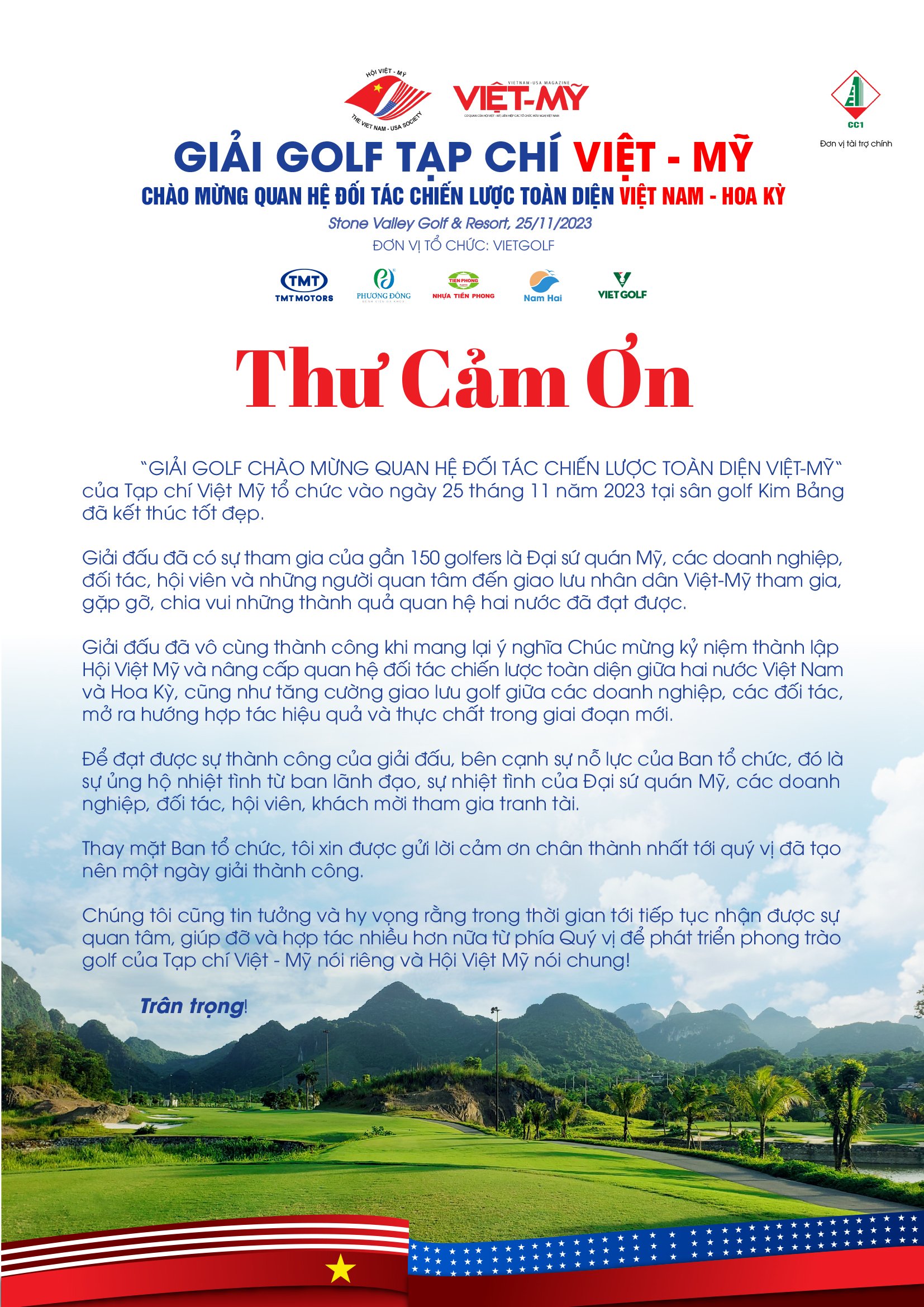 Tạp chí Việt Mỹ cảm ơn bạn bè, đối tác, doanh nghiệp dự giải Golf 2023