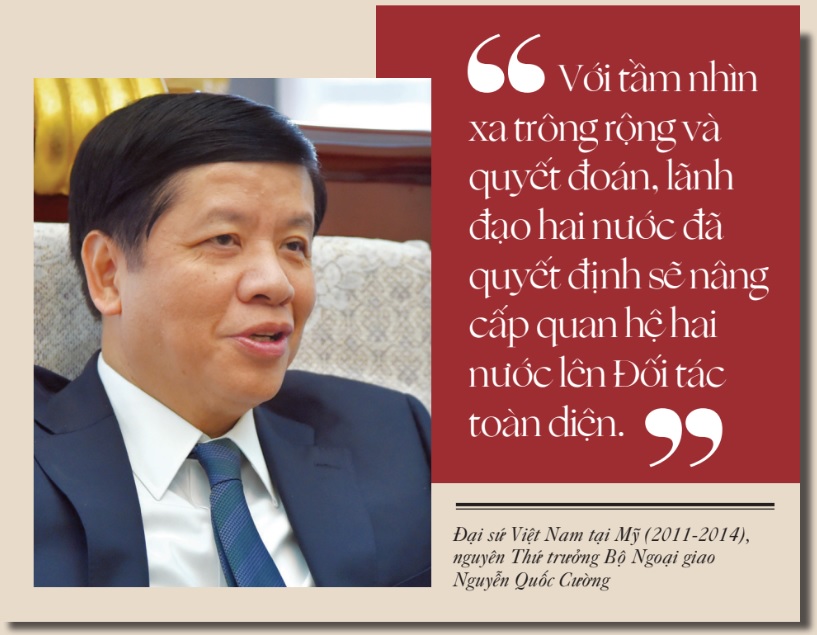 Nhìn rộng hơn, với việc thiết lập đối tác toàn diện với Hoa Kỳ, chúng ta đã hoàn tất việc thiết lập các mối quan hệ đối tác chiến lược, toàn diện với tất cả các nước lớn, trong đó có 5 nước Ủy viên thường trực Hội đồng Bảo an Liên Hợp Quốc, và các đối tác quan trọng hàng đầu khác của Việt Nam.