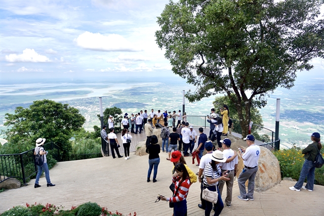 Visitors take photos at the peak of Bà Đen Mountain. — VNS Photo Thu Hằng