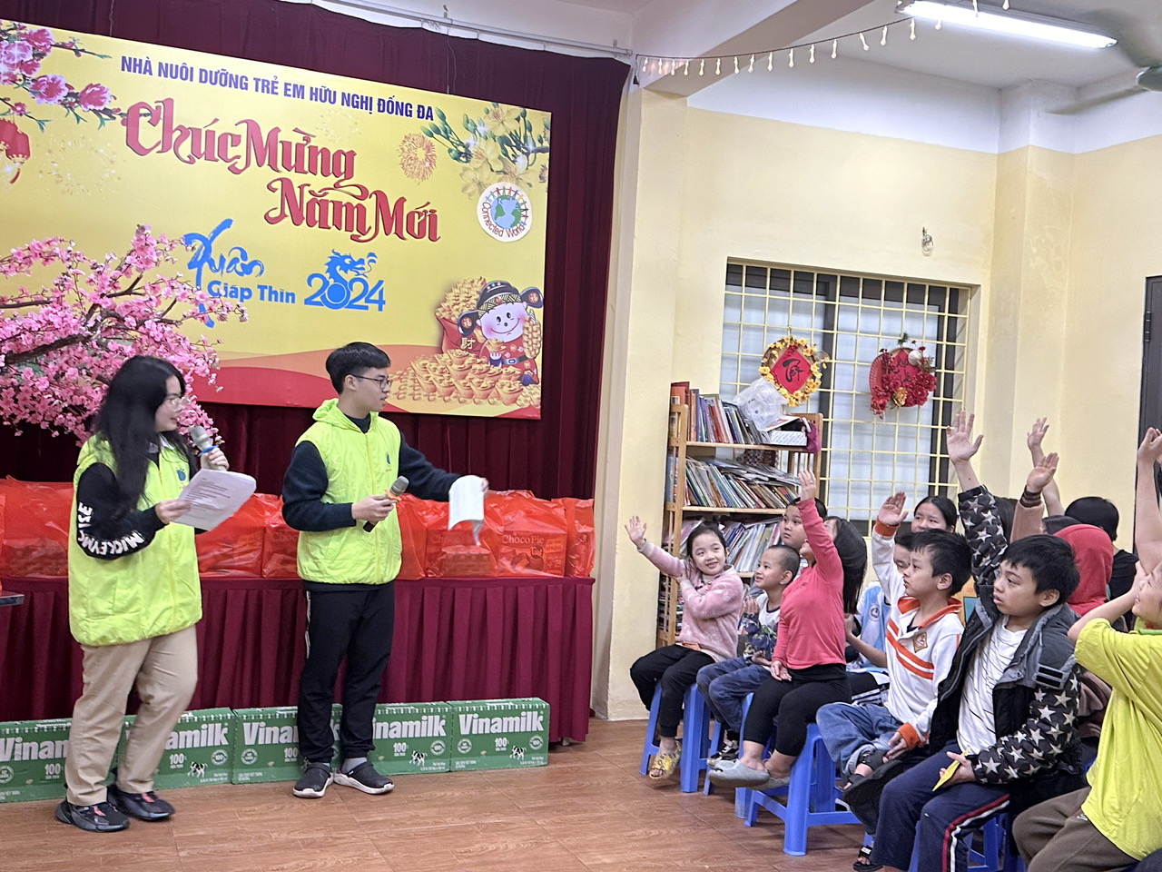 TCVM - Các Tình nguyện viên trong CLB Thế giới Kết nối đã thực hiện “sứ mệnh” trao gửi yêu thương đến các bạn nhỏ tại Nhà nuôi dưỡng Trẻ em Hữu nghị Đống Đa nhân dịp Tết Nguyên đán 2024.