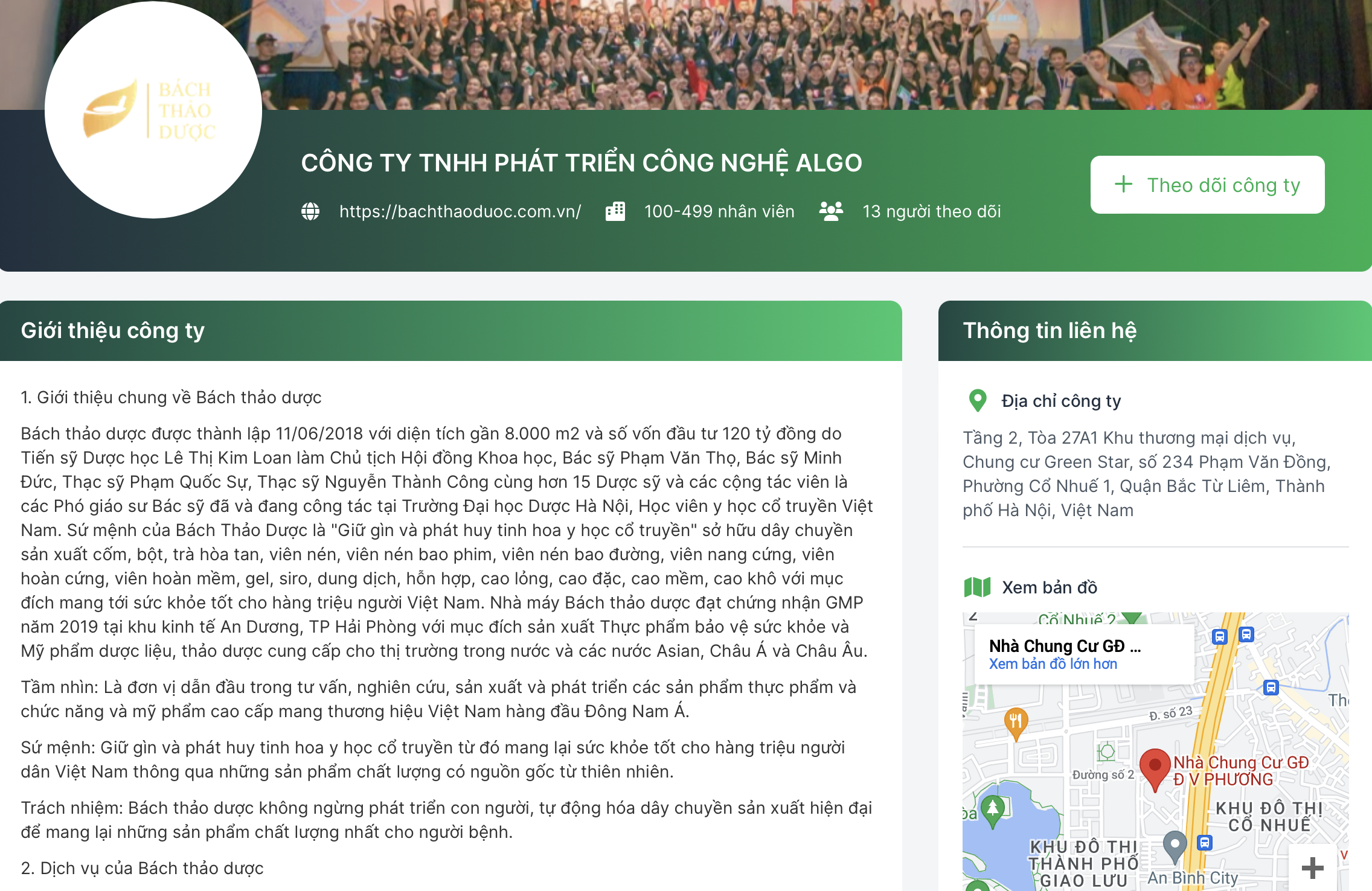 Bài đăng tuyển dụng và giới thiệu về Công ty ALGO và Bách Thảo Dược