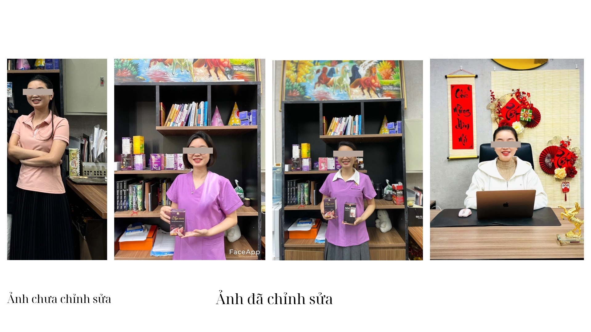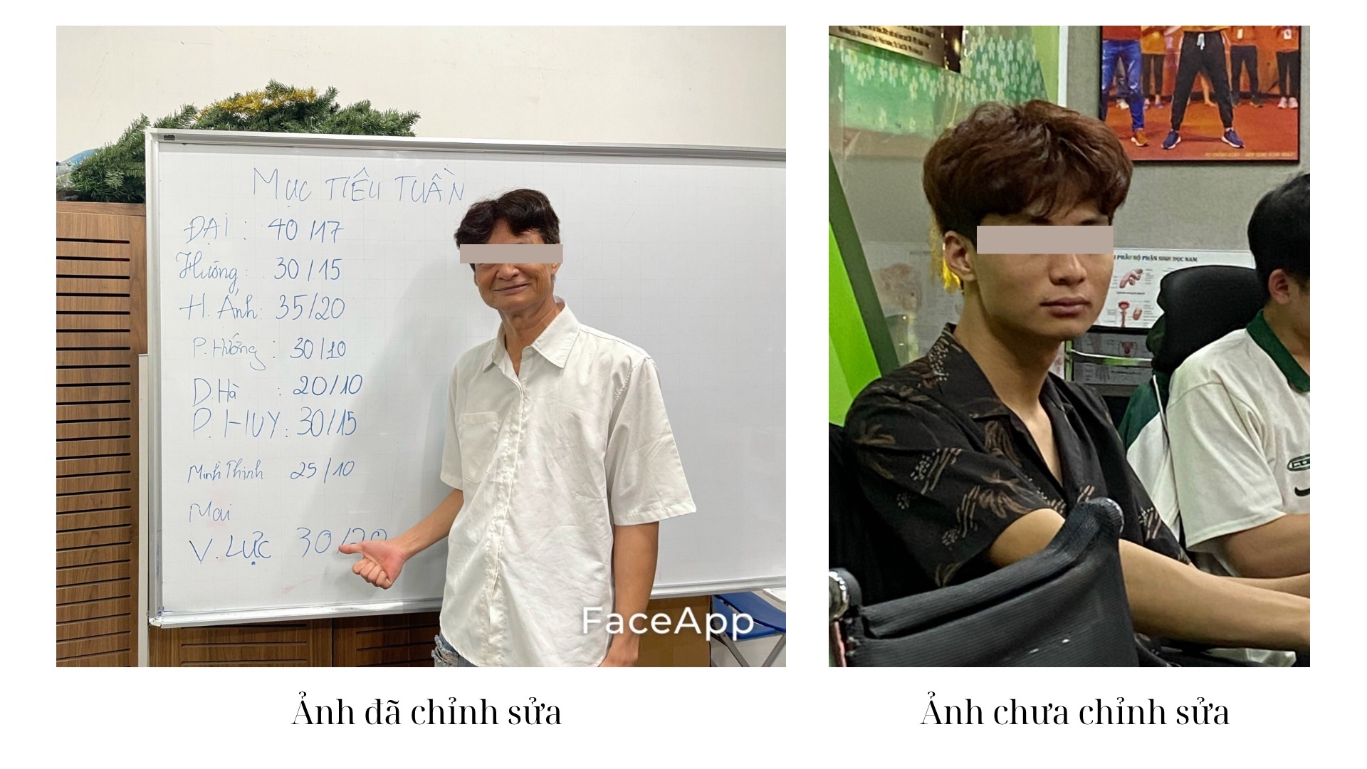 Lan và đồng nghiệp được hướng dẫn sử dụng các phần mềm chỉnh sửa ảnh để trông già hơn so với tuổi thật.