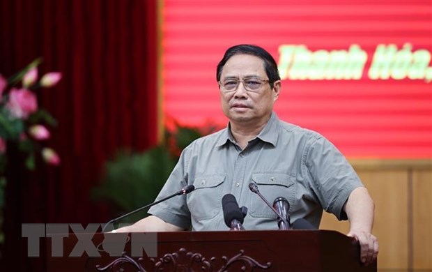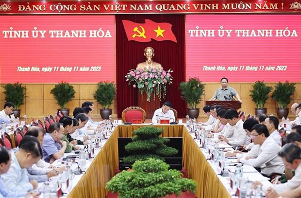 Thủ tướng Phạm Minh Chính làm việc với lãnh đạo chủ chốt tỉnh Thanh Hóa. (Ảnh: Dương Giang/TTXVN)