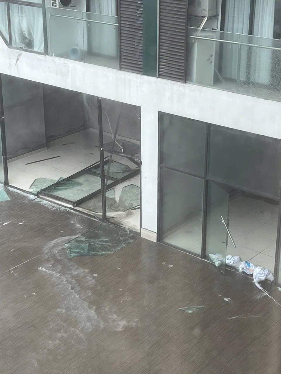 Các tấm kính cường lực tại các tòa chung cư cũng phải gánh chịu số phận trước sức mạnh của siêu bão.