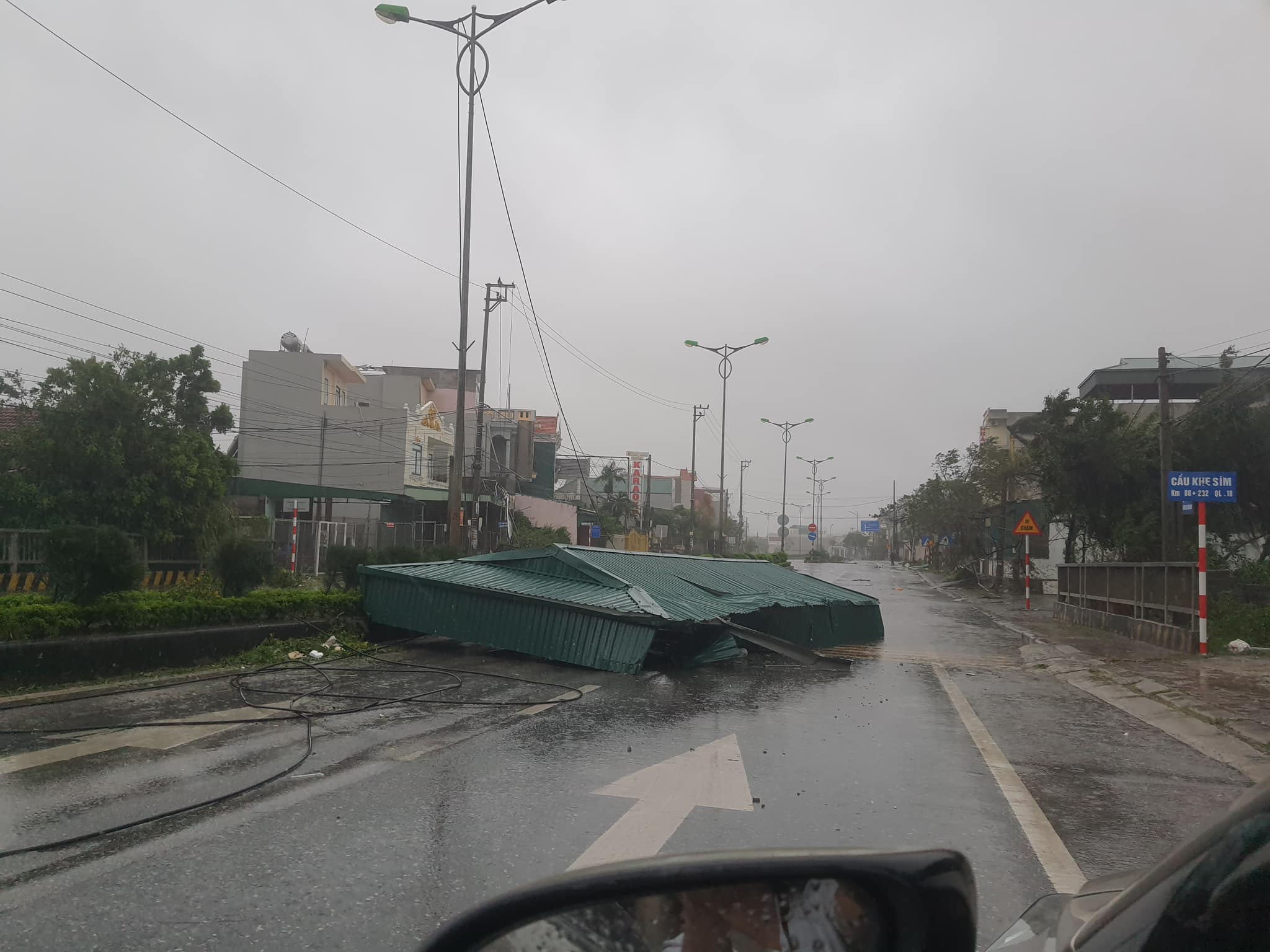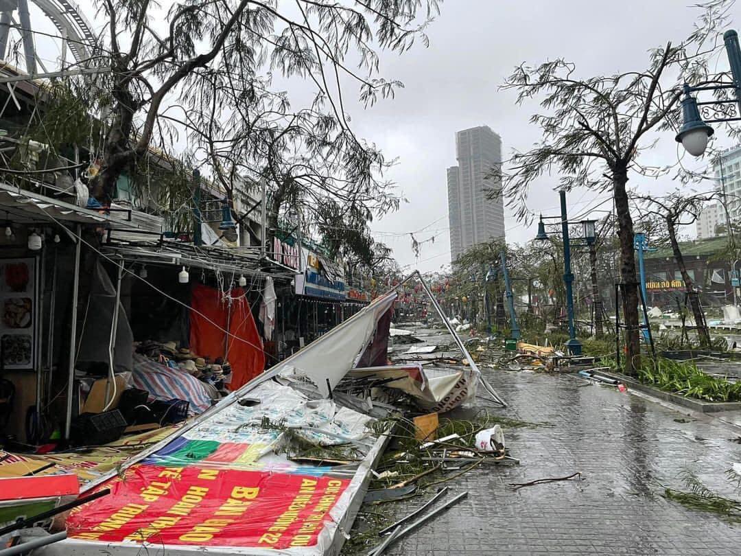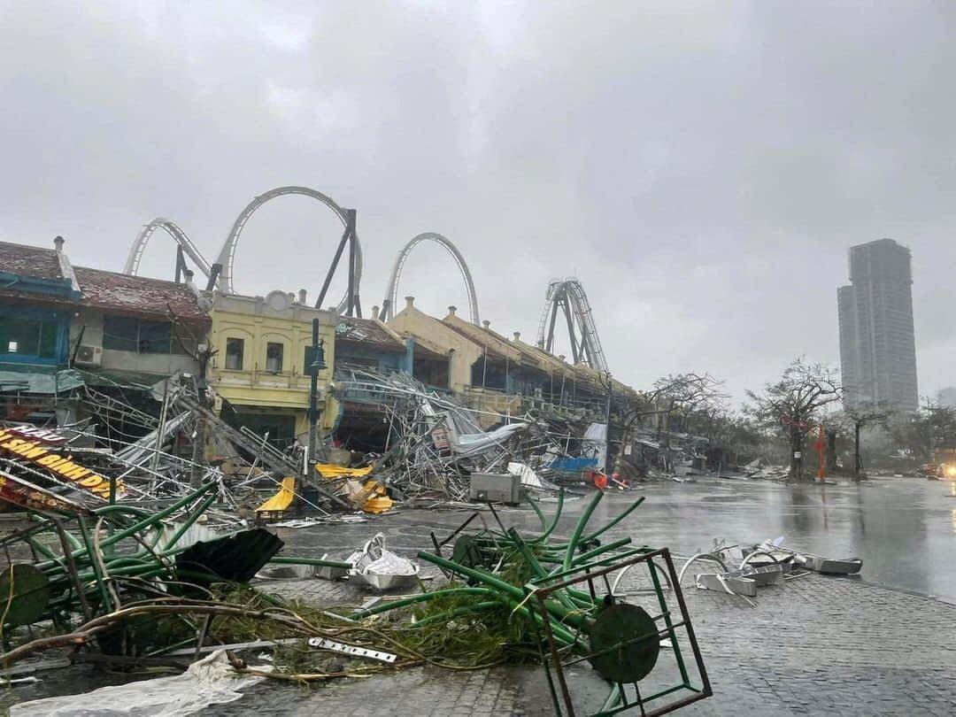 Toàn bộ khu vực các gian hàng kinh doanh bao gồm : Nhà hàng , cafe, đồ lưu niệm bị gió quật đổ bay nhiều biển hiệu, trơ trọi khung thép.