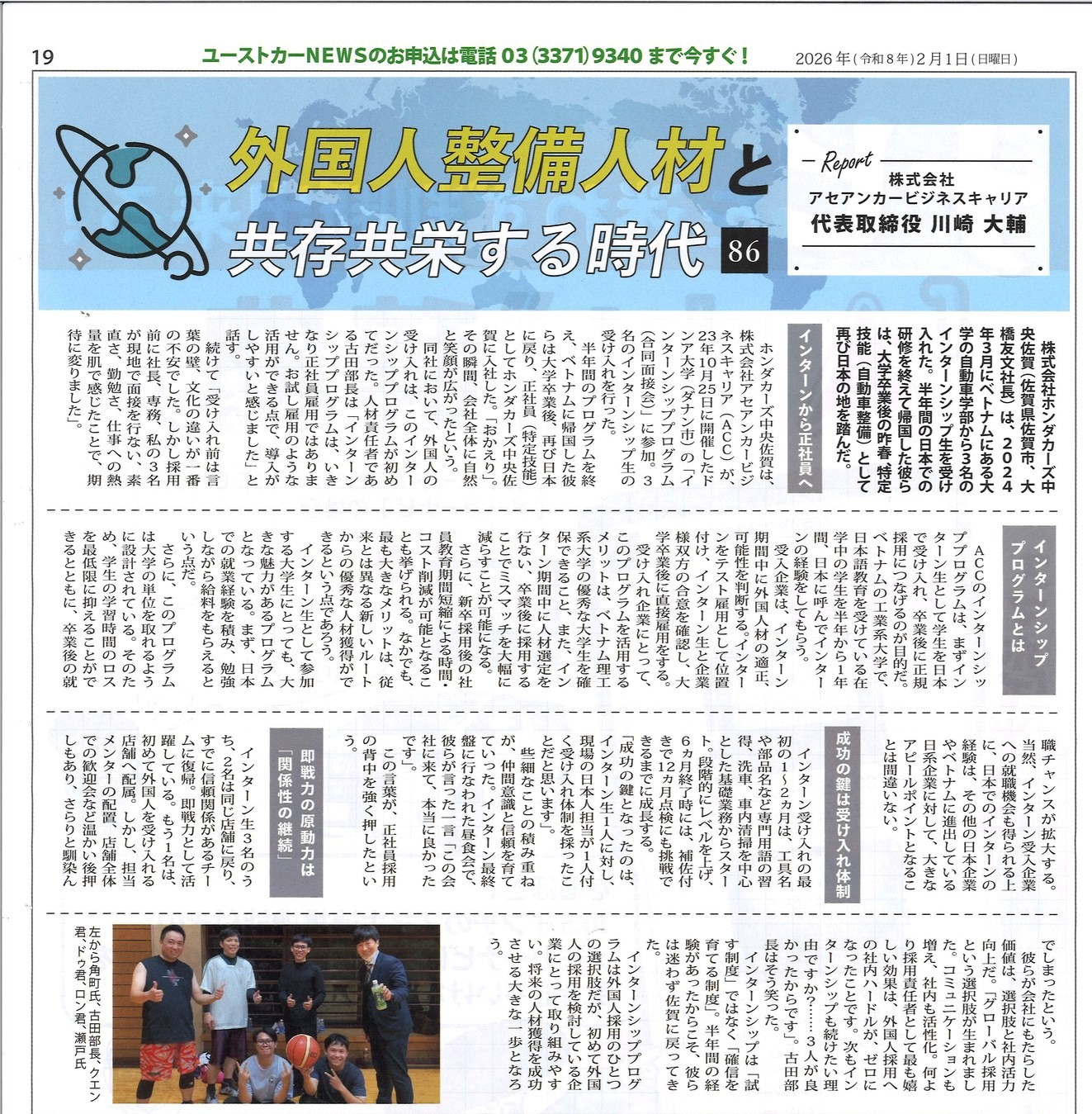 Ngay cuối tháng 2, báo Nhật đưa tin về “chuyến trở lại làm việc” trong vai trò nhân viên chính thức của 3 sinh viên ngành Ô tô Đại học Đông Á ở Honda Cars Chuo Saga (tỉnh Saga, Nhật).