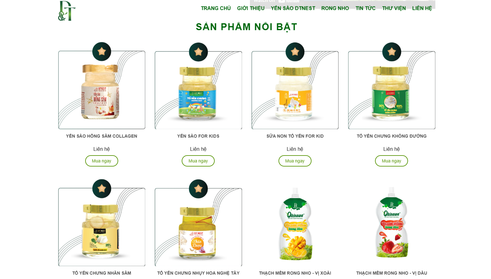 Một số sản phẩm Yến Sào được giới thiệu trên website của Công ty Cổ phần DT Food