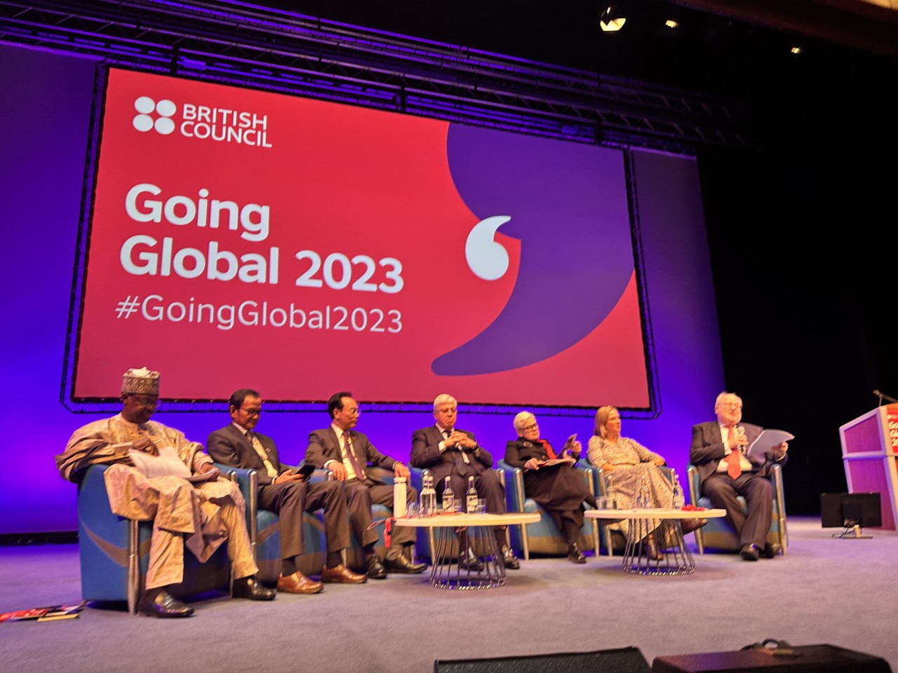 Hội nghị Giáo dục Toàn cầu Going Global được tổ chức bởi Hội đồng Anh. Đây là sự kiện được tổ chức thường niên, mang đến cơ hội cho các nhà lãnh đạo giáo dục quốc tế kết nối, chia sẻ kiến thức, tìm giải pháp cho các vấn đề toàn cầu và thúc đẩy tương lai của giáo dục đại học và giáo dục nâng cao. Thứ trưởng Hoàng Minh Sơn phát biểu tại Hội nghị Giáo dục Toàn cầu Going Global Bày tỏ sự vinh dự được trao đổi với rất nhiều nhà lãnh đạo giáo dục trong nước và quốc tế tại hội nghị, Bộ trưởng Giáo dục Vương quốc Anh, bà Gillian Keegan cho biết: Hợp tác quốc tế đóng một vai trò quan trọng trong việc mở ra những cơ hội mới cho người học, trang bị cho doanh nghiệp những kỹ năng cần thiết để phát triển và giải quyết các thách thức toàn cầu như tính bền vững và phân biệt đối xử.Các thảo luận tại Hội nghị Giáo dục Toàn cầu Going Global xoay quanh việc làm thế nào để ngành giáo dục có thể giải quyết tốt hơn các thách thức ở quốc gia cũng như toàn cầu, đồng thời giúp trao quyền cho các nhóm kinh tế xã hội thấp, phụ nữ, học viên là người khuyết tật và sinh viên từ các nhóm hoặc cộng đồng dân tộc được tiếp cận với giáo dục một cách công bằng và bền vững. Hội nghị mở ra cơ hội hợp tác giáo dục giữa Việt Nam và nhiều quốc gia Năm 2023 đánh dấu 50 năm quan hệ ngoại giao Vương quốc Anh - Việt Nam và 30 năm Hội đồng Anh tại Việt Nam. Việc phái đoàn giáo dục đại học Việt Nam tham dự Hội nghị Giáo dục Toàn cầu Going Global sẽ tạo thêm cơ hội để tăng cường quan hệ đối tác giáo dục đại học giữa Vương quốc Anh và Việt Nam cả về chiều rộng và chiều sâu, đồng thời tăng cường cơ hội hợp tác với các trường đại học Vương quốc Anh, các ngành, lĩnh vực và các cơ quan chuyên môn trong giảng dạy, học tập và nghiên cứu. Cũng tại Vương quốc Anh đã diễn ra Diễn đàn Hiệu trưởng Đại học Việt Nam - Vương quốc Anh do Bộ GDĐT Việt Nam và Hội đồng Anh đồng tổ chức. Diễn đàn thu hút sự tham gia của lãnh đạo 26 trường đại học Vương quốc Anh và 36 lãnh đạo từ các trưởng đại học Việt Nam. Thứ trưởng Hoàng Minh Sơn chứng kiến trao MOU của Đại học Bách khoa Hà Nội và đối tác Vương quốc Anh tại Diễn đàn Hiệu trưởng Đại học Việt Nam - Vương quốc Anh