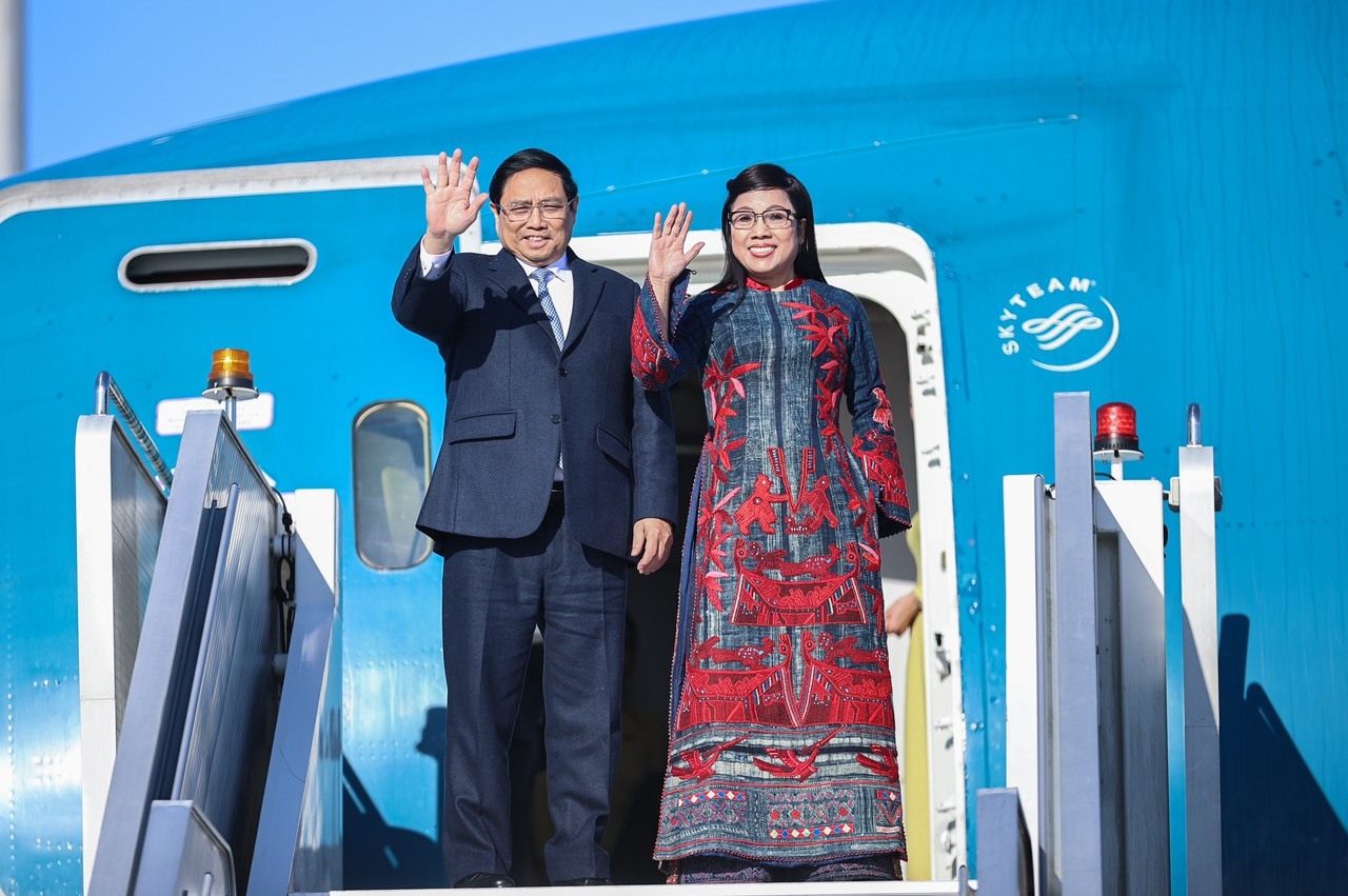 Sau khi dự Diễn đàn Kinh tế Thế giới (WEF) ở Davos, Thụy Sĩ và thăm Hungary, Thủ tướng Phạm Minh Chính cùng phu nhân Lê Thị Bích Trân chiều 20/1 tới thủ đô Bucharest, bắt đầu thăm chính thức Romania theo lời mời của Thủ tướng Marcel Ciolacu.