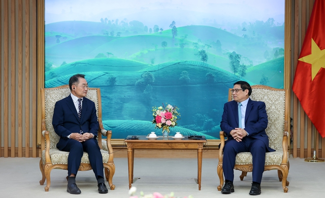 Thủ tướng Phạm Minh Chính chào mừng ông Ji Jong Rip tới Việt Nam.