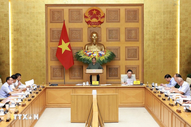 Thủ tướng Phạm Minh Chính chủ trì Phiên họp 15, Ban Chỉ đạo quốc gia về chống khai thác hải sản bất hợp pháp, không báo cáo và không theo quy định (Ban Chỉ đạo IUU). (Ảnh: TTXVN)