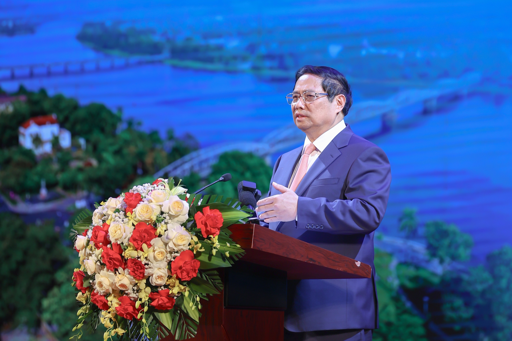 Phát biểu tại hội nghị, Thủ tướng Phạm Minh Chính bày tỏ đánh giá cao tỉnh Thừa Thiên Huế cùng các cơ quan, địa phương, đối tác đã phối hợp chuẩn bị chu đáo hội nghị "3 trong 1": công bố Quy hoạch tỉnh, Quy hoạch chung đô thị Thừa Thiên Huế và xúc tiến đầu tư của tỉnh; thể hiện tầm nhìn phát triển Thừa Thiên Huế được xây dựng một cách bài bản, lớp lang, chiến lược và dài hạn và sự quan tâm đặc biệt của các doanh nghiệp, nhà đầu tư.