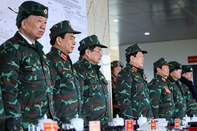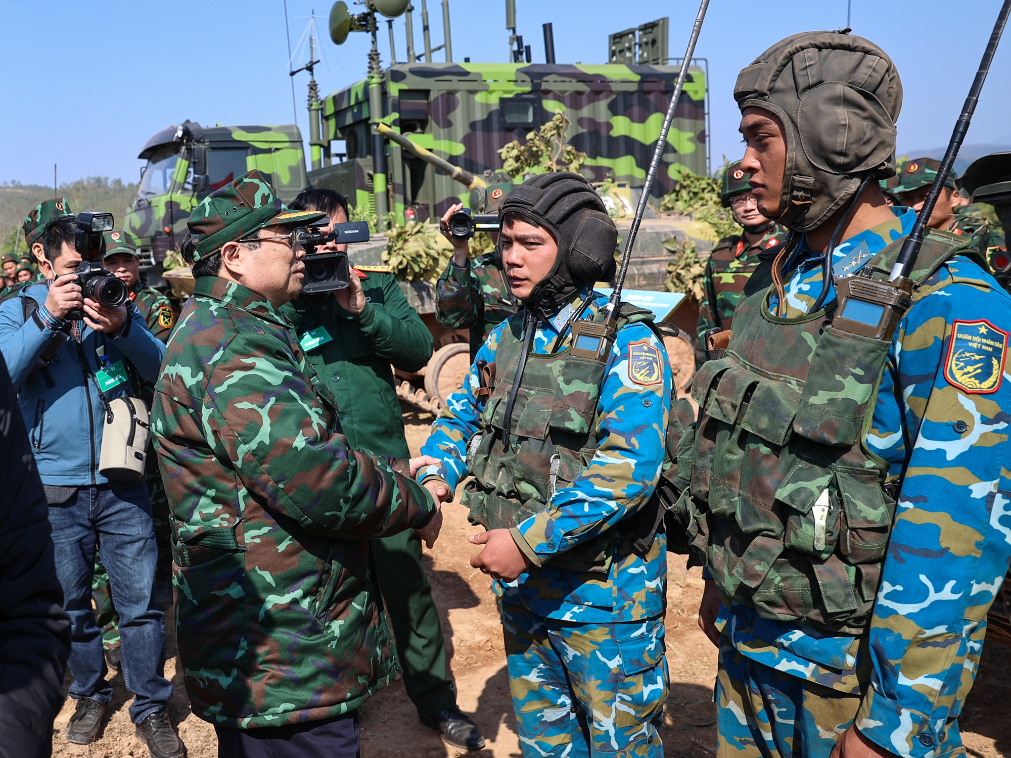 TCVM - Ngày 23/12, tại Trường bắn Quốc gia 1, tỉnh Bắc Giang, Ủy viên Bộ Chính trị, Thủ tướng Chính phủ Phạm Minh Chính đã dự, động viên cán bộ, chiến sĩ Quân đoàn 12 và các lực lượng tham gia cuộc diễn tập chiến thuật có bắn đạn thật năm 2023.