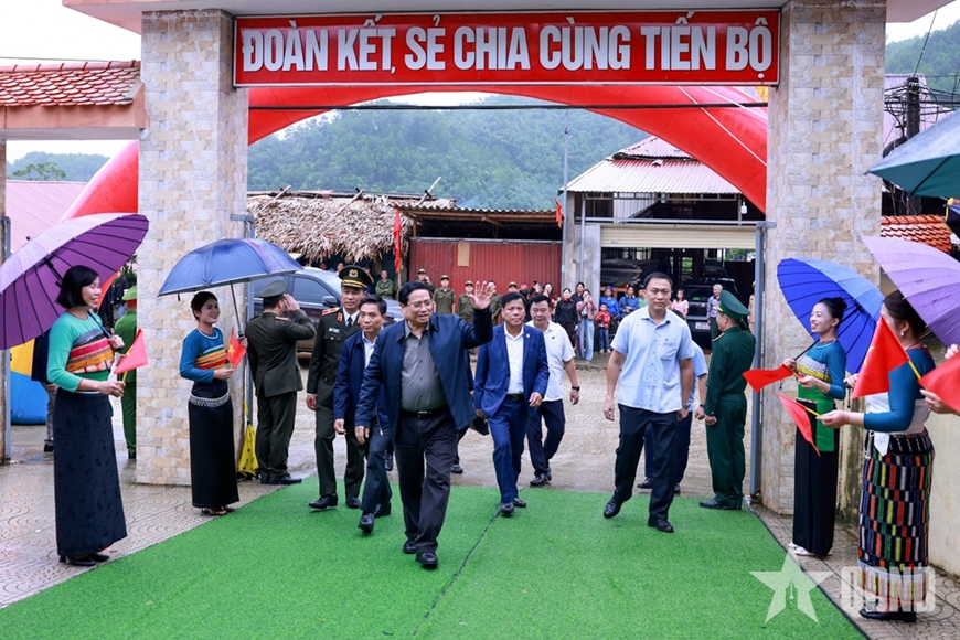 Thủ tướng Phạm Minh CHính tham dự Lễ khởi công tại Trường nội trú liên cấp Tiểu học và Trung học cơ sở xã Yên Khương, Thanh Hoá. (Ảnh: báo Quân đội Nhân dân)