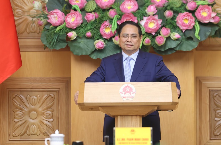 Thủ tướng Phạm Minh Chính phát biểu kết luận cuộc tọa đàm - Ảnh: VGP/Nhật Bắc