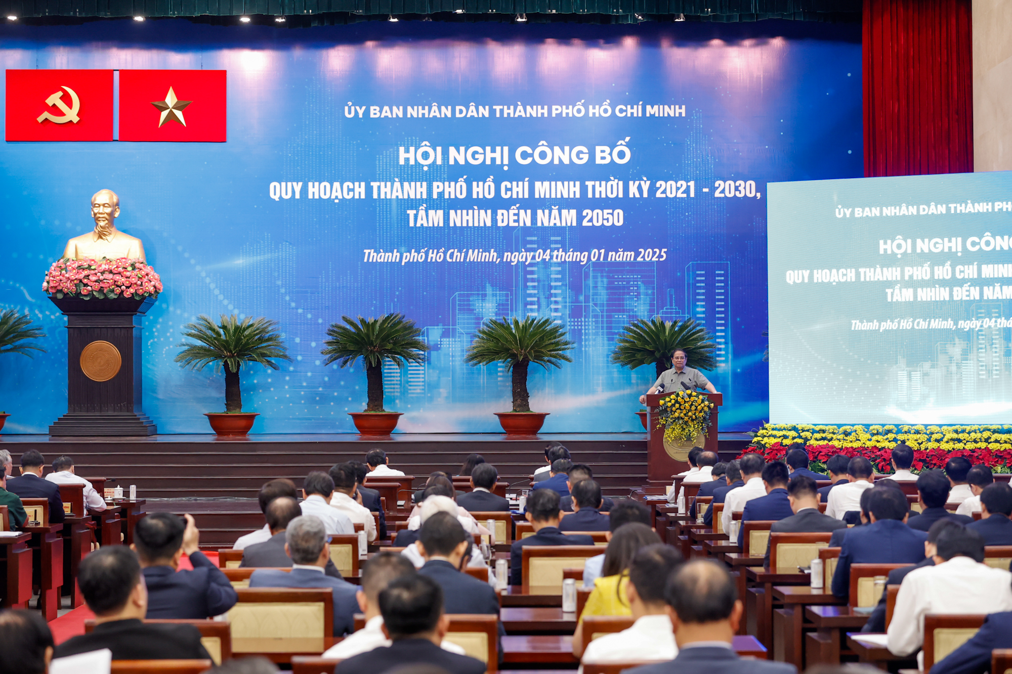 TCVM - Chiều 4/1, tại TPHCM, Thủ tướng Phạm Minh Chính dự Hội nghị công bố Quyết định của Thủ tướng Chính phủ phê duyệt Quy hoạch TPHCM thời kỳ 2021-2030, tầm nhìn đến năm 2050.