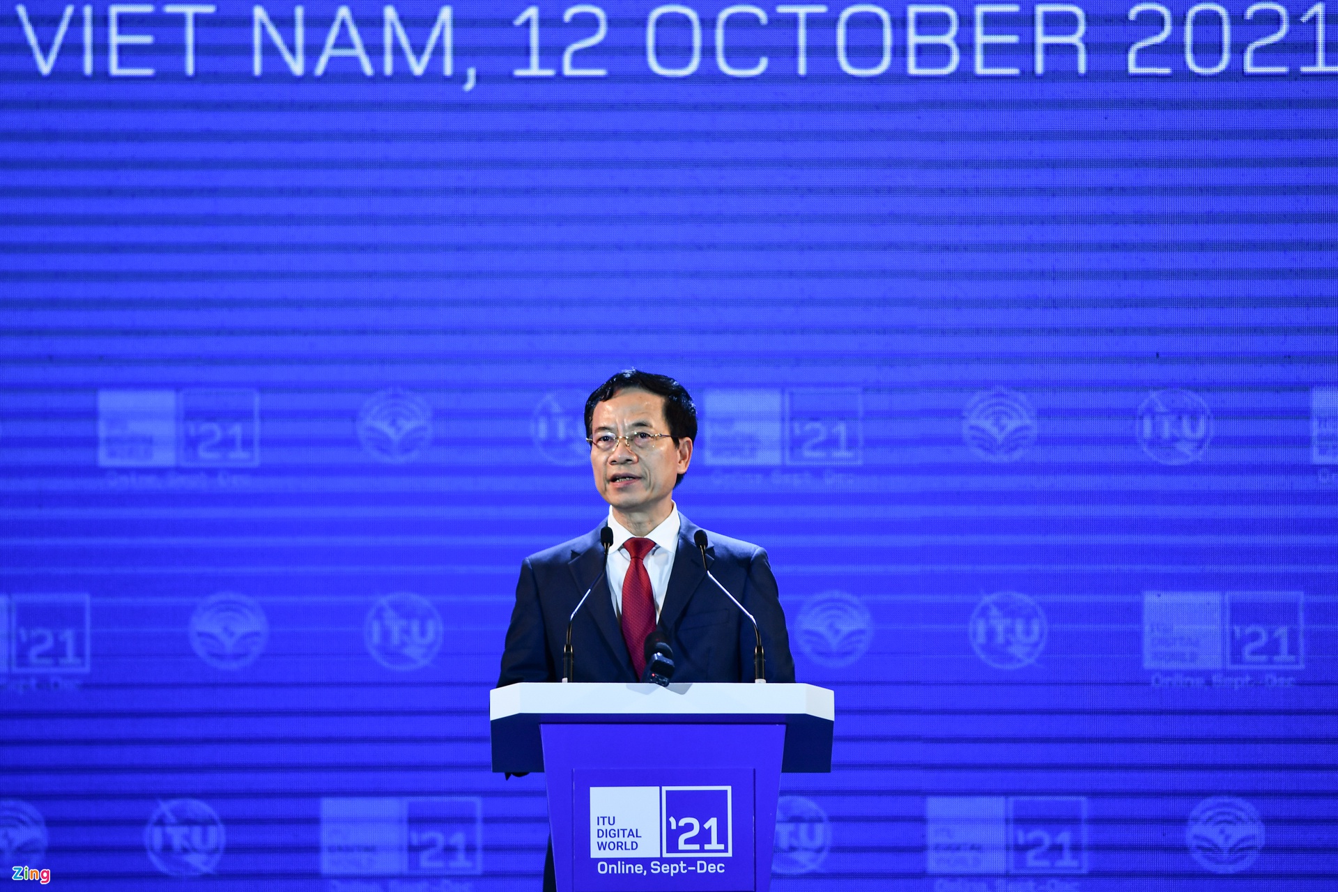 Bộ trưởng Nguyễn Mạnh Hùng giải thích lý do sự kiện ITU Digital World 2021 tập trung vào những chủ đề thúc đẩy chuyển đổi số. Ảnh: Đức Anh.