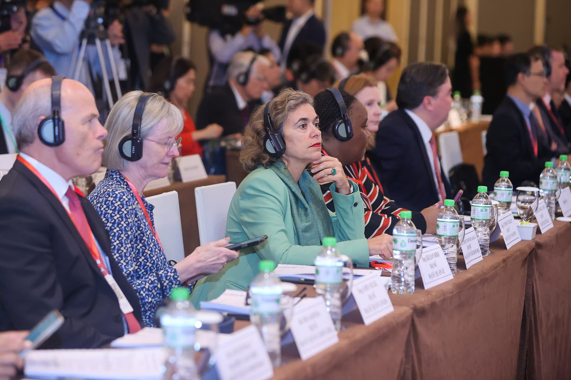 Các doanh nghiệp, nhà đầu tư nước ngoài lắng nghe các ý kiến, phát biểu tại Diễn đàn. (Ảnh: VGP)