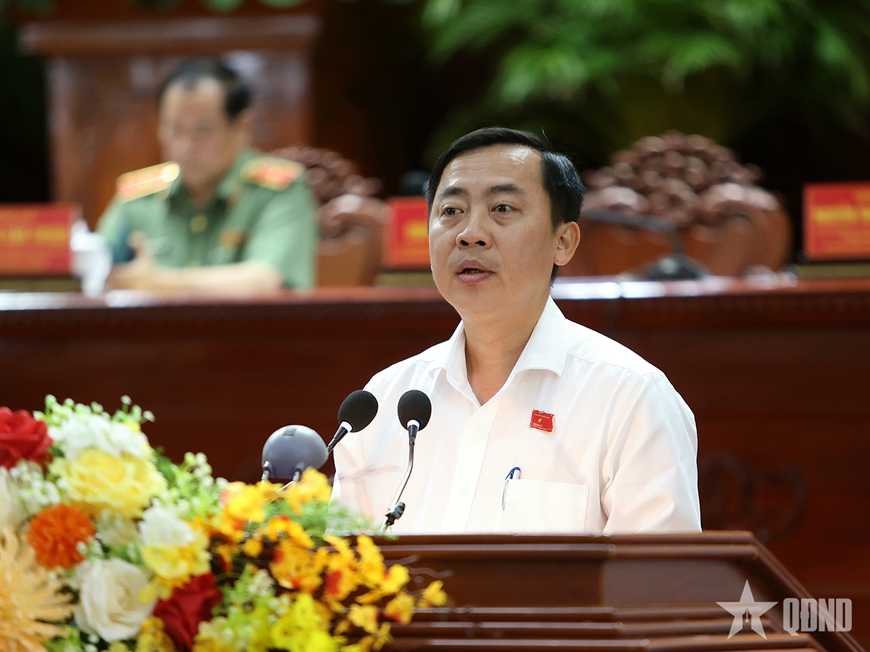 Đồng chí Đào Chí Nghĩa, Phó trưởng đoàn chuyên trách Đoàn ĐBQH đơn vị TP Cần Thơ báo cáo