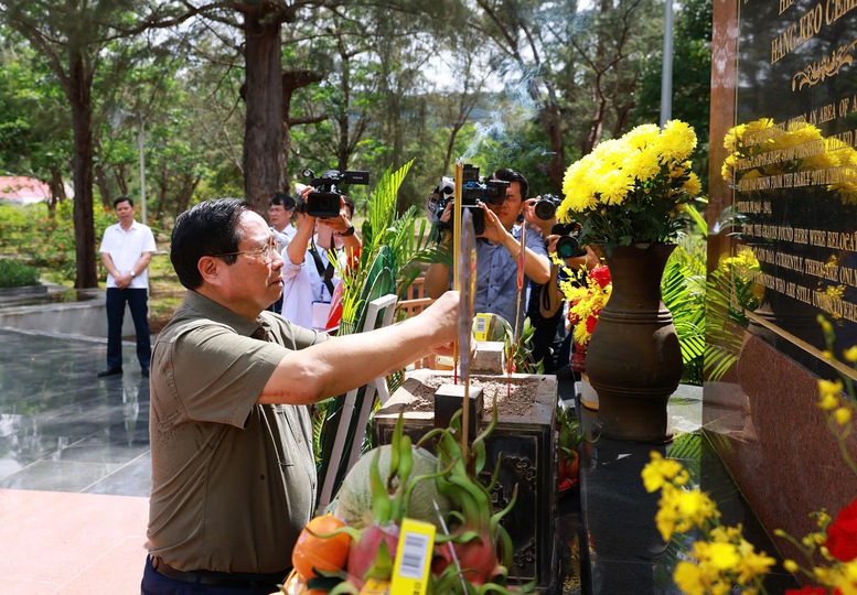Tại nghĩa trang Hàng Dương, Nghĩa trang Hàng Keo, Đền thờ Côn Đảo, trong không khí trang nghiêm và thành kính, Thủ tướng cùng Đoàn công tác và lãnh đạo tỉnh Bà Rịa-Vũng Tàu đã dành phút mặc niệm, dâng hương, dâng hoa thể hiện lòng tưởng nhớ, tri ân sâu sắc công lao to lớn của các Anh hùng liệt sĩ, chiến sĩ cách mạng, đồng bào yêu nước đã chiến đấu, hy sinh trong sự nghiệp đấu tranh giải phóng dân tộc, thống nhất đất nước.