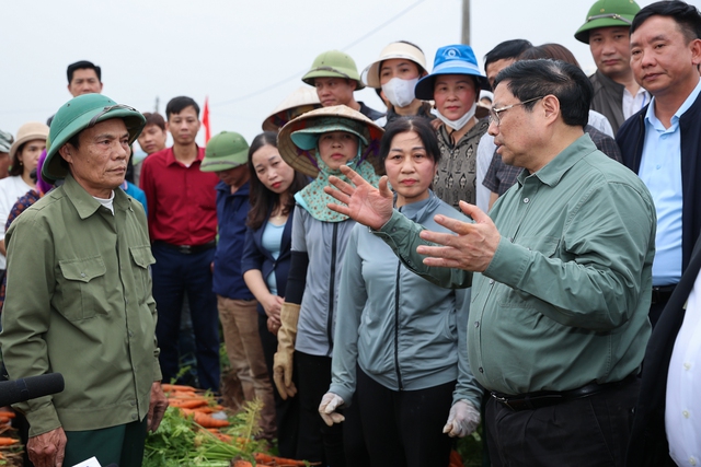 Trực tiếp xuống đồng thu hoạch cà rốt cùng nông dân, nói chuyện, động viên bà con, cắt băng chúc mừng xuất khẩu lô hàng cà rốt đầu Xuân Giáp Thìn 2024 đi các nước Hàn Quốc, Nhật Bản, châu Âu, Thủ tướng biểu dương mô hình sản xuất, chế biến, xuất khẩu cà rốt của xã Đức Chính.
