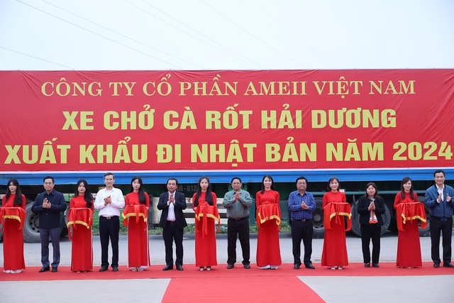 Thủ tướng cắt băng chúc mừng xuất khẩu lô hàng cà rốt đầu Xuân Giáp Thìn 2024 đi các nước Hàn Quốc, Nhật Bản, châu Âu. Ảnh: Chinhphu.vn