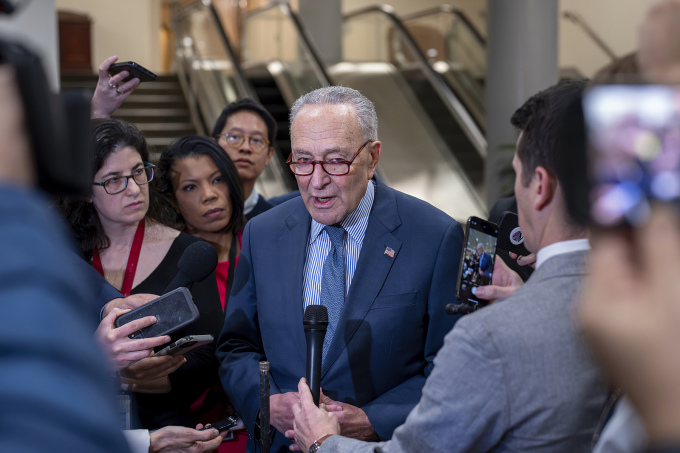 Thượng nghị sỹ Chuck Schumer trả lời phỏng vấn sau khi dự luật bị bác bỏ. Ảnh: AP