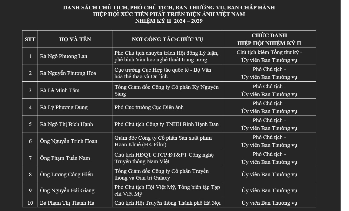 Tiến sĩ Ngô Phương Lan tái đắc cử Chủ tịch Hiệp hội Xúc tiến Phát triển Điện ảnh Việt Nam