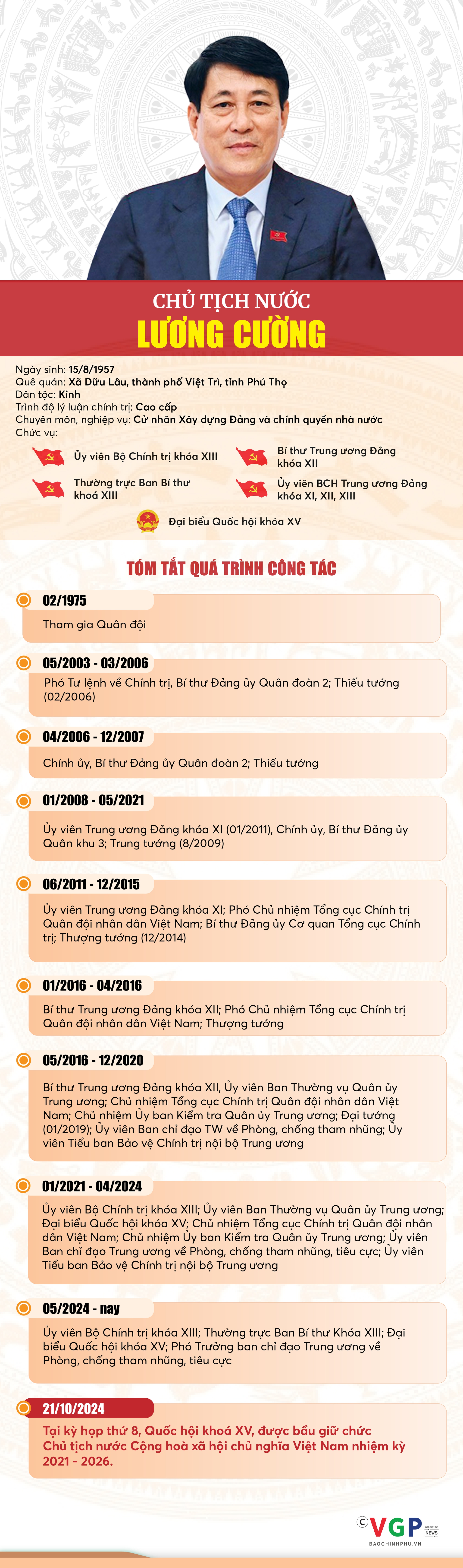 Tại kỳ họp thứ 8, quốc hội khoá XV với 440/440 đại biểu Quốc hội tham gia biểu quyết tán thành, Quốc hội đã bầu Đại tướng Lương Cường, Uỷ viên Bộ Chính trị, Thường trực Ban Bí thư làm Chủ tịch nước Cộng hoà xã hội chủ nghĩa Việt Nam nhiệm kỳ 2021 - 2026.