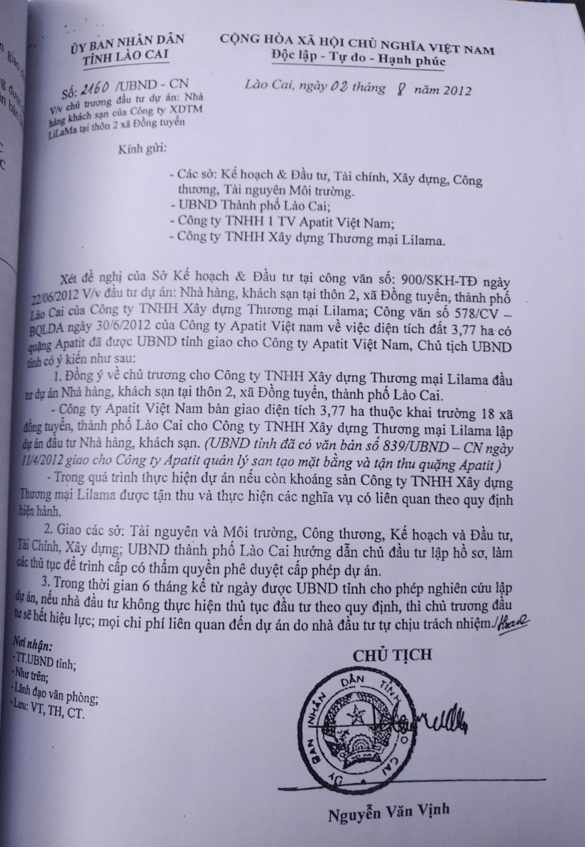 Ngoài ra, TAND tỉnh Lào Cai yêu cầu điều tra, làm rõ sự khác nhau về diện tích, số lượng quặng và trị giá quặng khai thác trái phép thuộc khai trường 18 đã được Bộ Công thương phê duyệt quy hoạch quặng Apatit tại Quyết định số 28 ngày 18/8/2008; làm rõ diện tích, số lượng quặng và trị giá quặng khai thác trái phép nằm ngoài khai trường 18 trong tổng diện tích 5,99 ha nói chung và trong 3,77 ha tại thôn 2 xã Đồng Tuyển, TP Lào Cai Cai được UBND tỉnh Lào Cai ký cấp giấy chứng nhận đầu tư cho Công ty Lilama thực hiện dự án khách sạn, nhà hàng nói riêng.