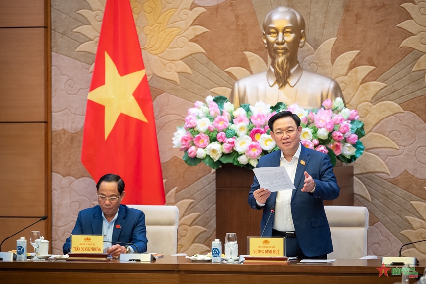 Chủ tịch Quốc hội Vương Đình Huệ phát biểu. Ảnh: PHẠM THẮNG/QĐND