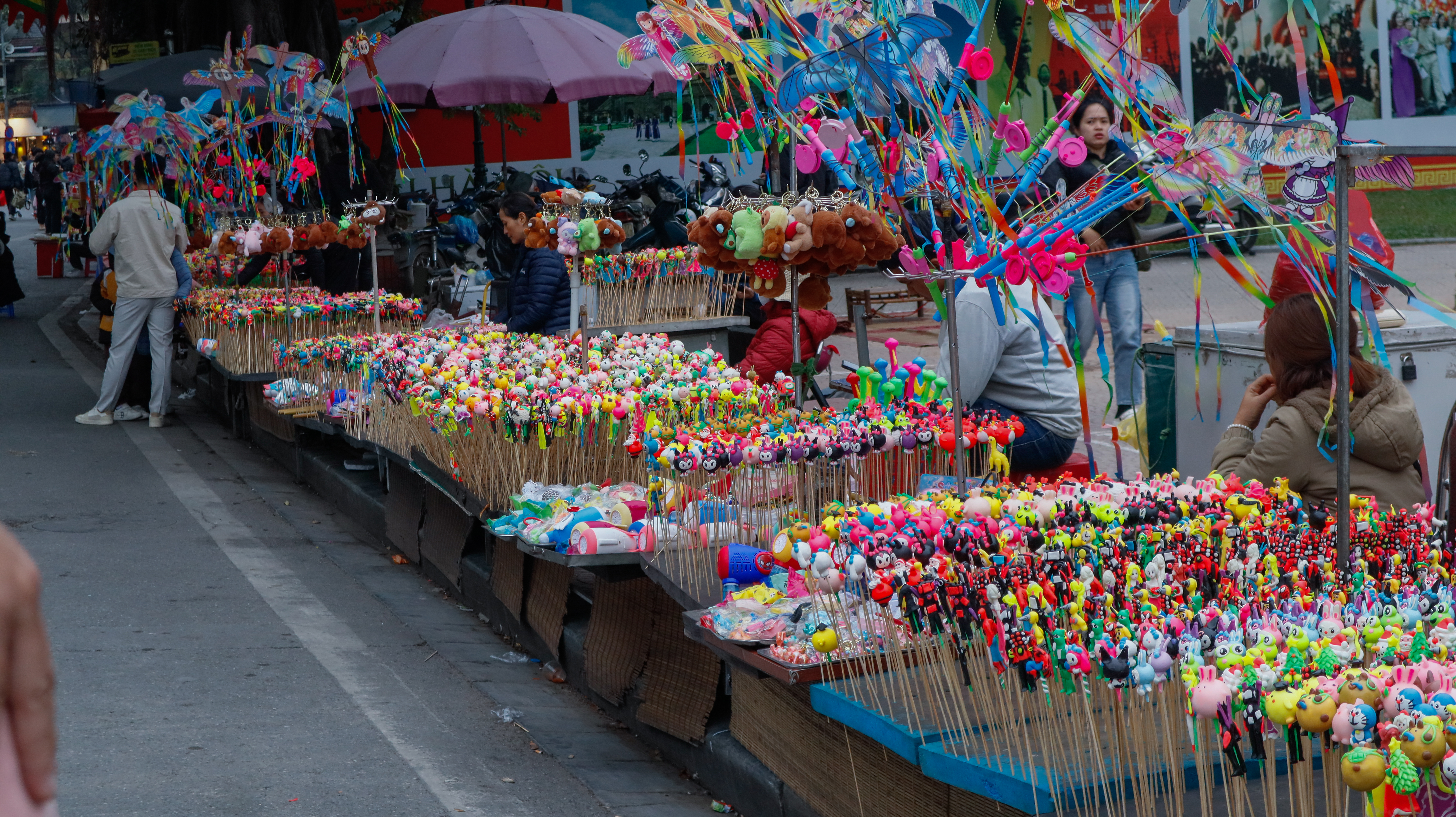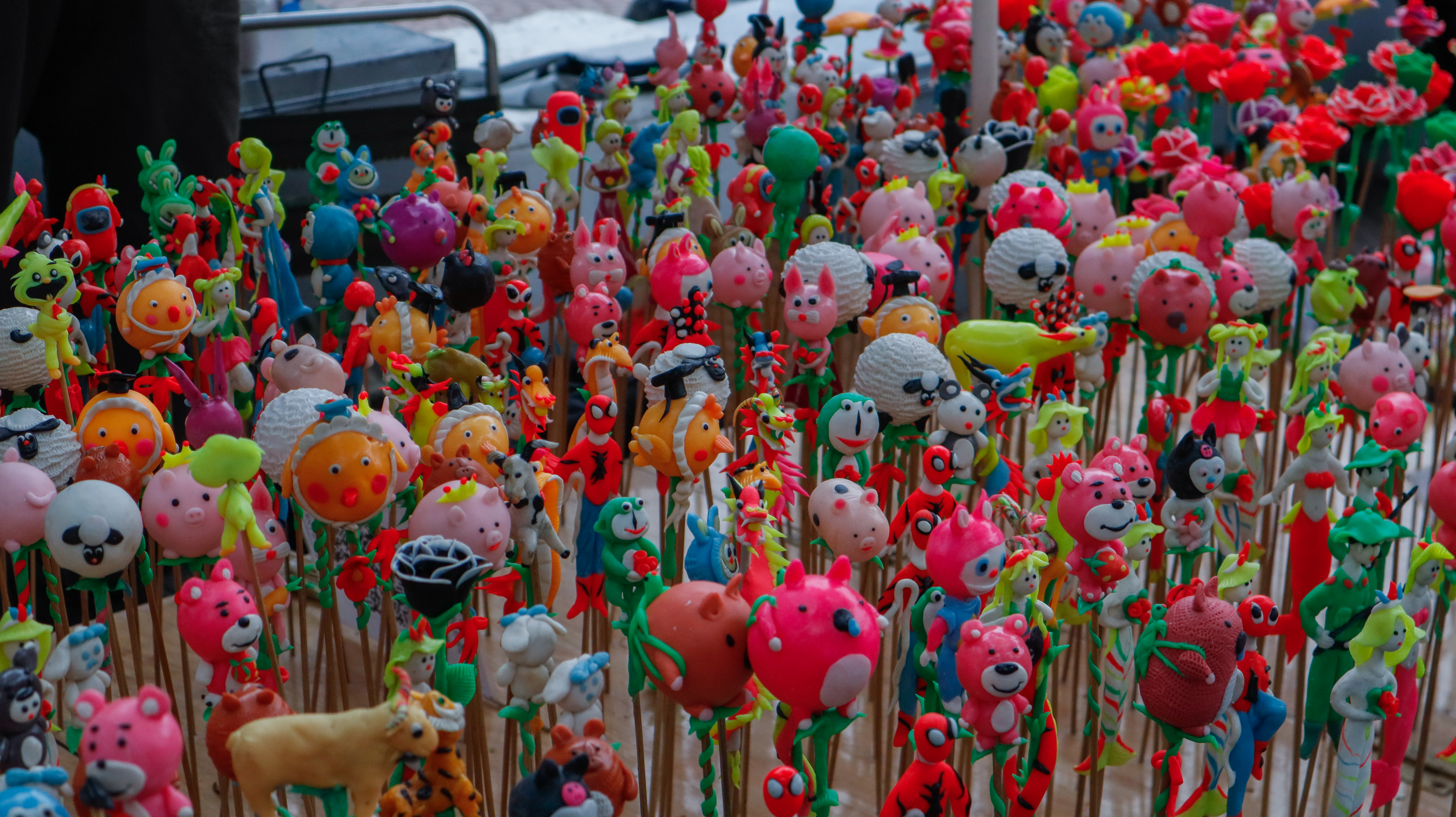 Những sạp tò he muôn màu trên phố đi bộ. Ảnh: Đăng Khôi