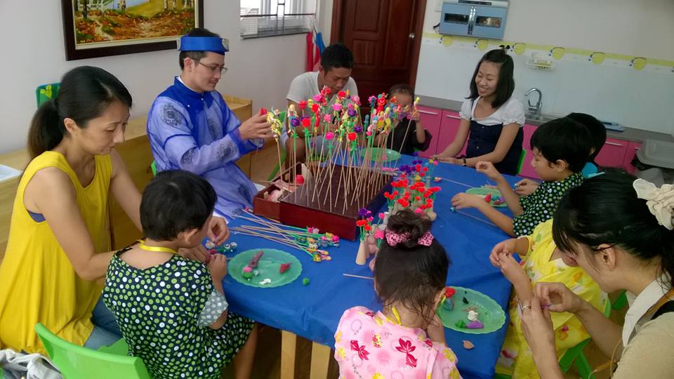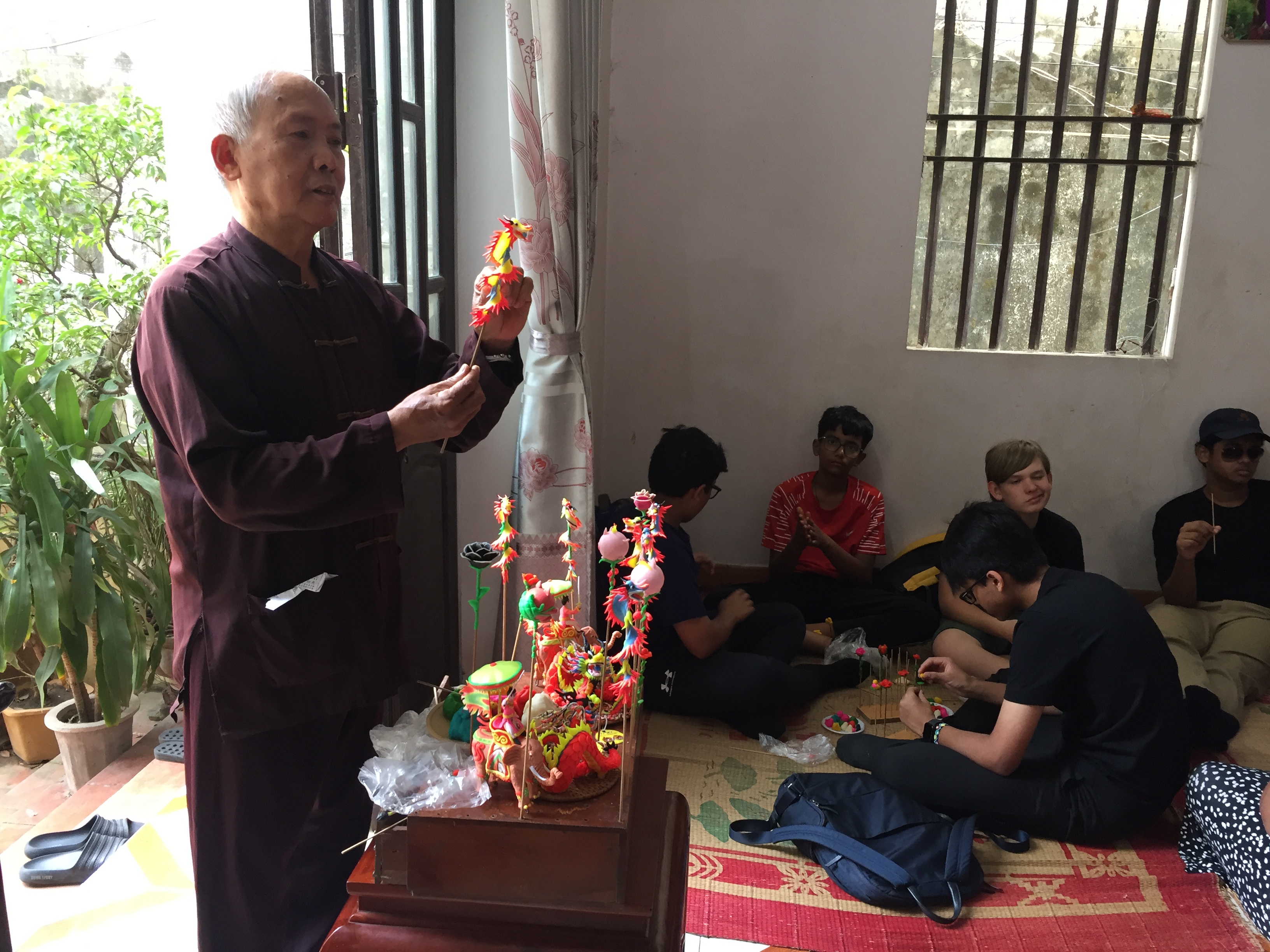 Một buổi dạy nghề trong chương trình tham quan làng nghề tò he do ông Đĩnh tổ chức