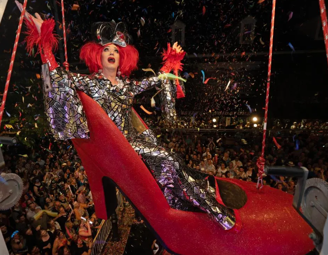 Nghệ sĩ kéo Gary Marion, đóng vai Sushi được kéo thả xuống cùng với chiếc giày cao gót màu đỏ