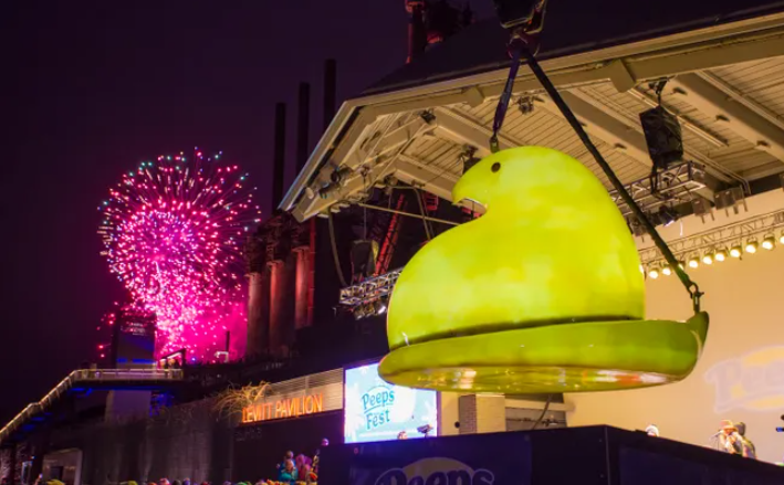 Những người tham dự chào đón năm mới ở Bethlehem, bang Pennsylvania, có cơ hội chứng kiến chú gà con khổng lồ nặng 181kg "rơi xuống" từ bầu trời bắt đầu từ lúc sau hoàng hôn.