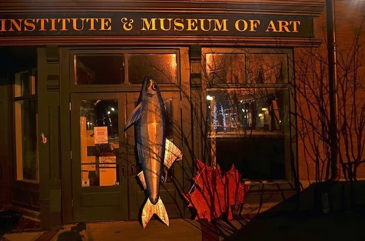 Vào đêm giao thừa, cá mòi và lá phong được thả xuống ở trung tâm thành phố Eastport, Maine