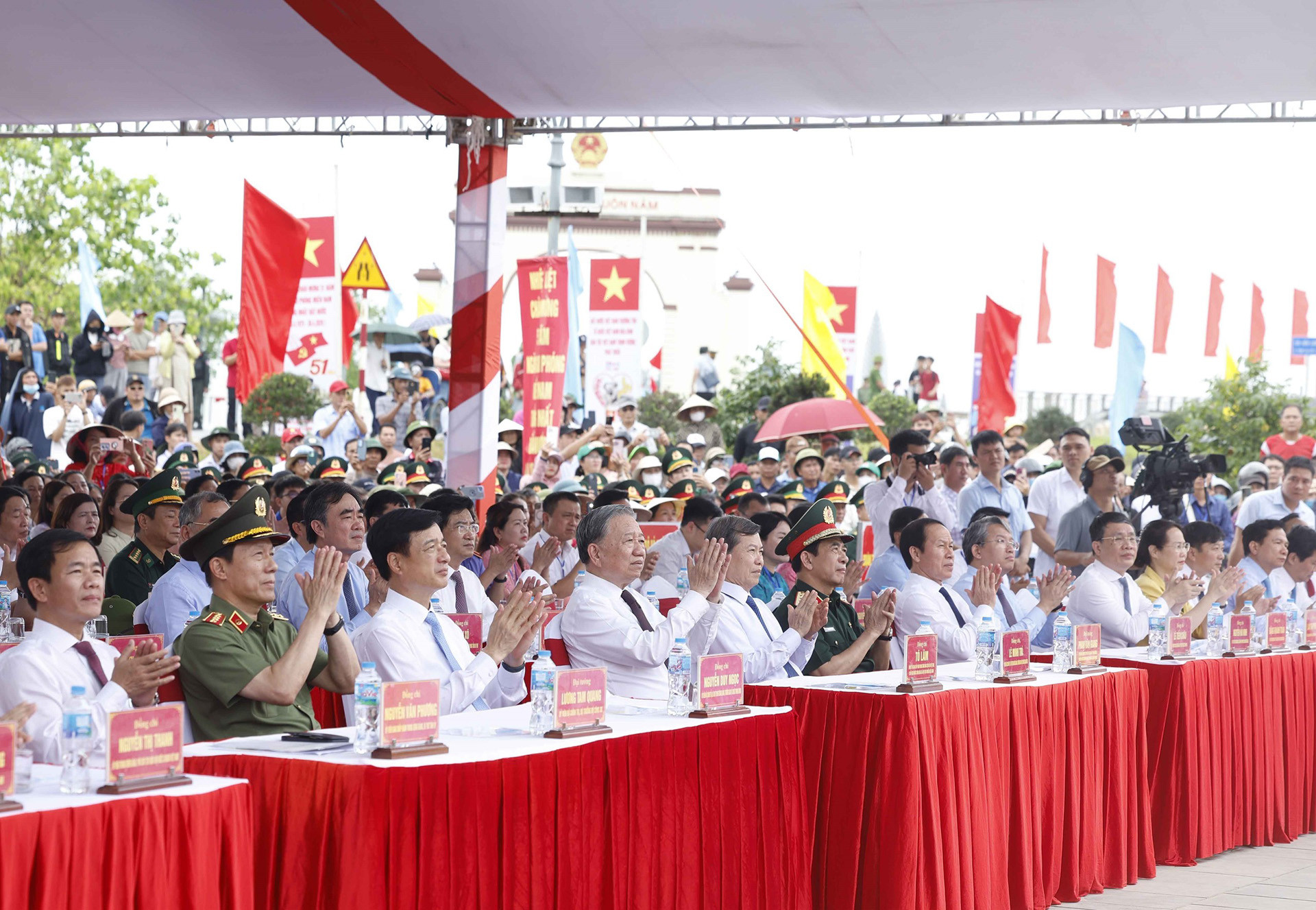 Tổng Bí thư, Chủ tịch nước Tô Lâm dự lễ. Cùng dự có các đồng chí Ủy viên Bộ Chính trị: Nguyễn Duy Ngọc, Bí thư Trung ương Đảng, Trưởng ban Tổ chức Trung ương; Lê Minh Trí, Bí thư Trung ương Đảng, Trưởng ban Nội chính Trung ương; Đại tướng Phan Văn Giang, Phó Thủ tướng Chính phủ, Bộ trưởng Bộ Quốc phòng; Đại tướng Lương Tam Quang, Bộ trưởng Bộ Công an; các đồng chí Ủy viên Trung ương Đảng, lãnh đạo Chính phủ, Quốc hội, lãnh đạo ban, bộ, ngành, đoàn thể Trung ương, lãnh đạo Bộ Tư lệnh Quân khu 4 và tỉnh Quảng Trị, cùng đông đảo nhân dân, du khách trong và ngoài tỉnh.