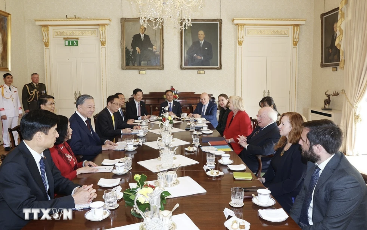 Trong khuôn khổ chuyến thăm cấp Nhà nước tới Ireland từ ngày 1-3/10 theo lời mời của Tổng thống Ireland Michael Higgins, sáng 2/10 (theo giờ địa phương), sau lễ đón chính thức được tổ chức trang trọng tại Phủ Tổng thống, Tổng Bí thư, Chủ tịch nước Tô Lâm và Tổng thống Michael Higgins đã đồng chủ trì hội đàm giữa Đoàn đại biểu cấp cao hai nước.