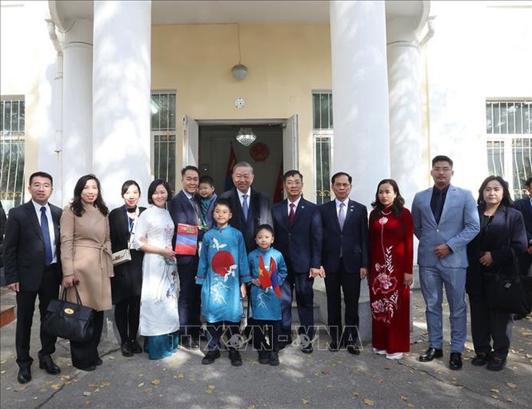 Tổng Bí thư, Chủ tịch nước Tô Lâm thăm Đại sứ quán Việt Nam và gặp gỡ cộng đồng người Việt tại Mông Cổ - Ảnh: TTXVN