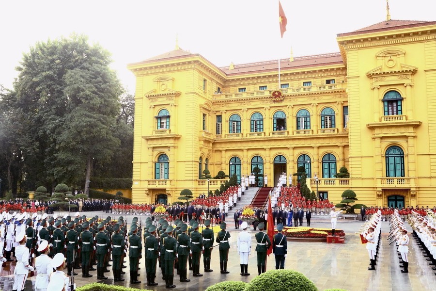 Tổng Bí thư Nguyễn Phú Trọng và Phu nhân chủ trì Lễ đón Tổng Bí thư, Chủ tịch nước Trung Quốc Tập Cận Bình và Phu nhân. (Ảnh: Trí Dũng/TTXVN) Nhận lời mời của Tổng Bí thư Ban Chấp hành Trung ương Đảng Cộng sản Việt Nam Nguyễn Phú Trọng và Phu nhân, Chủ tịch nước Cộng hòa Xã hội Chủ nghĩa Việt Nam Võ Văn Thưởng và Phu nhân, Tổng Bí thư Ban Chấp hành Trung ương Đảng Cộng sản Trung Quốc, Chủ tịch nước Cộng hòa Nhân dân Trung Hoa Tập Cận Bình và Phu nhân đã tới Thủ đô Hà Nội, bắt đầu chuyến thăm cấp Nhà nước tới Việt Nam từ ngày 12 -13/12/2023.Chiều 12/12, Lễ đón chính thức Tổng Bí thư, Chủ tịch nước Trung Quốc Tập Cận Bình và Phu nhân được tổ chức trọng thể tại Phủ Chủ tịch theo nghi thức cao nhất dành đón Nguyên thủ quốc gia. Tổng Bí thư Nguyễn Phú Trọng và Phu nhân chủ trì Lễ đón. Quang cảnh Lễ đón Tổng Bí thư, Chủ tịch nước Trung Quốc Tập Cận Bình. (Ảnh: Lâm Khánh/TTXVN Tham dự Lễ đón có các đồng chí: Trương Thị Mai, Ủy viên Bộ Chính trị, Thường trực Ban Bí thư, Trưởng ban Tổ chức Trung ương; Phan Đình Trạc, Ủy viên Bộ Chính trị, Bí thư Trung ương Đảng, Trưởng ban Nội chính Trung ương; Trần Thanh Mẫn, Ủy viên Bộ Chính trị, Phó Chủ tịch Thường trực Quốc hội; Đại tướng Tô Lâm, Ủy viên Bộ Chính trị, Bộ trưởng Bộ Công an; Đại tướng Phan Văn Giang, Ủy viên Bộ Chính trị, Bộ trưởng Bộ Quốc phòng; Lê Minh Hưng, Bí thư Trung ương Đảng, Chánh Văn phòng Trung ương; Đỗ Văn Chiến, Bí thư Trung ương Đảng, Chủ tịch Ủy ban Trung ương Mặt trận Tổ quốc Việt Nam; Nguyễn Trọng Nghĩa, Bí thư Trung ương Đảng, Trưởng ban Tuyên giáo Trung ương; Lê Minh Khái, Bí thư Trung ương Đảng, Phó Thủ tướng Chính phủ; Lê Hoài Trung, Bí thư Trung ương Đảng, Trưởng Ban Đối ngoại Trung ương; Võ Thị Ánh Xuân, Ủy viên Trung ương Đảng, Phó Chủ tịch nước; Bùi Thanh Sơn, Ủy viên Trung ương Đảng, Bộ trưởng Bộ Ngoại giao... cùng nhiều đồng chí Ủy viên Trung ương Đảng, lãnh đạo các bộ, ban, ngành, cơ quan Trung ương và thành phố Hà Nội, Văn phòng Tổng Bí thư. Tổng Bí thư Nguyễn Phú Trọng và Phu nhân đón Tổng Bí thư, Chủ tịch nước Trung Quốc Tập Cận Bình và Phu nhân. (Ảnh: Trí Dũng/TTXVN) Đông đảo các cháu thiếu nhi và quần chúng nhân dân Thủ đô đã nồng nhiệt chào đón Tổng Bí thư, Chủ tịch nước Trung Quốc Tập Cận Bình và Phu nhân cùng Đoàn Đại biểu Cấp cao Đảng, Nhà nước Trung Quốc.Đoàn xe chở Tổng Bí thư, Chủ tịch nước Trung Quốc Tập Cận Bình và Phu nhân tiến vào Phủ Chủ tịch. Tổng Bí thư Nguyễn Phú Trọng và Phu nhân nồng nhiệt chào đón Tổng Bí thư, Chủ tịch nước Trung Quốc Tập Cận Bình và Phu nhân. Hai bên giới thiệu các quan chức có mặt tại Lễ đón.Tổng Bí thư Nguyễn Phú Trọng mời Tổng Bí thư, Chủ tịch nước Trung Quốc Tập Cận Bình bước lên bục danh dự. Những loạt đại bác vang lên hùng tráng. Quân nhạc cử quốc thiều hai nước. Tổng Bí thư Nguyễn Phú Trọng và Tổng Bí thư, Chủ tịch nước Trung Quốc Tập Cận Bình duyệt đội danh dự Quân đội Nhân dân Việt Nam. Nghi thức bắn 21 loạt đại bác chào mừng chuyến thăm cấp Nhà nước tới Việt Nam của Tổng Bí thư, Chủ tịch nước Trung Quốc Tập Cận Bình và Phu nhân. (Ảnh: An Đăng/TTXVN) Chuyến thăm cấp Nhà nước đến Việt Nam của Tổng Bí thư, Chủ tịch nước Trung Quốc Tập Cận Bình cùng Phu nhân và Đoàn Đại biểu Cấp cao Đảng, Nhà nước Trung Quốc là chuyến thăm đầu tiên của Nhà lãnh đạo cao nhất của Đảng, Nhà nước Trung Quốc đến Việt Nam sau Đại hội XX Đảng Cộng sản Trung Quốc, đúng một năm sau chuyến thăm lịch sử đến Trung Quốc của Tổng Bí thư Nguyễn Phú Trọng (10/2022).Chuyến thăm diễn ra vào thời điểm kỷ niệm 15 năm Việt Nam và Trung Quốc thiết lập quan hệ Đối tác Hợp tác Chiến lược Toàn diện. Đây sẽ là một dấu mốc lịch sử mới trong quan hệ Việt Nam-Trung Quốc.Ngay sau Lễ đón, Tổng Bí thư Nguyễn Phú Trọng đã tiến hành hội đàm với Tổng Bí thư, Chủ tịch nước Trung Quốc Tập Cận Bình, tại Trụ sở Trung ương Đảng.