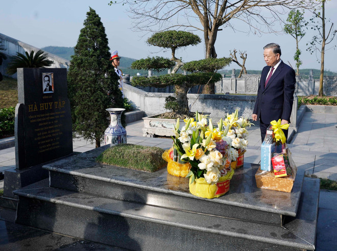 * Dâng hương, dâng hoa tưởng niệm tại Khu mộ Tổng Bí thư Hà Huy Tập (xã Cẩm Hưng, Hà Tĩnh), Tổng Bí thư Tô Lâm và các đại biểu thành kính tưởng nhớ và tri ân sâu sắc những công lao to lớn mà đồng chí Hà Huy Tập đã dành trọn cuộc đời chiến đấu, hy sinh vì sự nghiệp cách mạng vẻ vang của Đảng, của dân tộc.