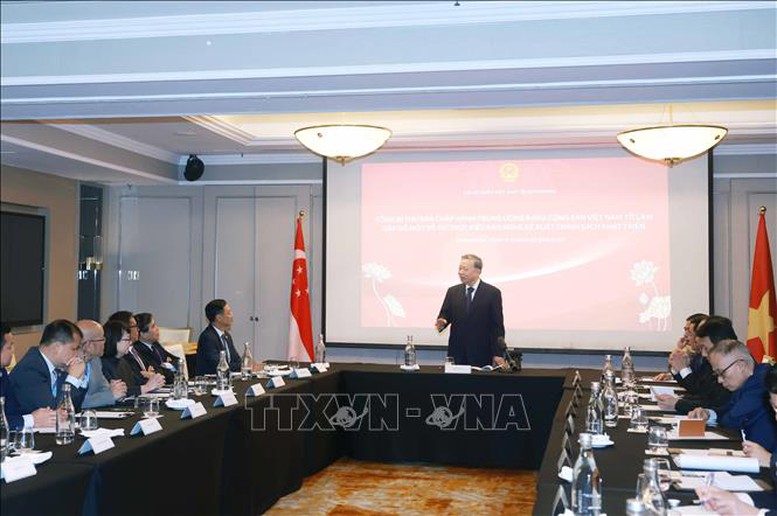Tổng Bí thư Tô Lâm chia sẻ một trong những hoạt động chính trong chuyến thăm lần này, bên cạnh việc tăng cường quan hệ hợp tác hiệu quả, thực chất giữa Việt Nam với Singapore là gặp gỡ trí thức, đại diện những chuyên gia, nhà nghiên cứu, nhà khoa học, học giả uy tín, những người con ưu tú của đất nước và cộng đồng người Việt tại Singapore, để cùng nhau trao đổi, thảo luận và đóng góp ý kiến cho đường hướng phát triển tương lai của Việt Nam.