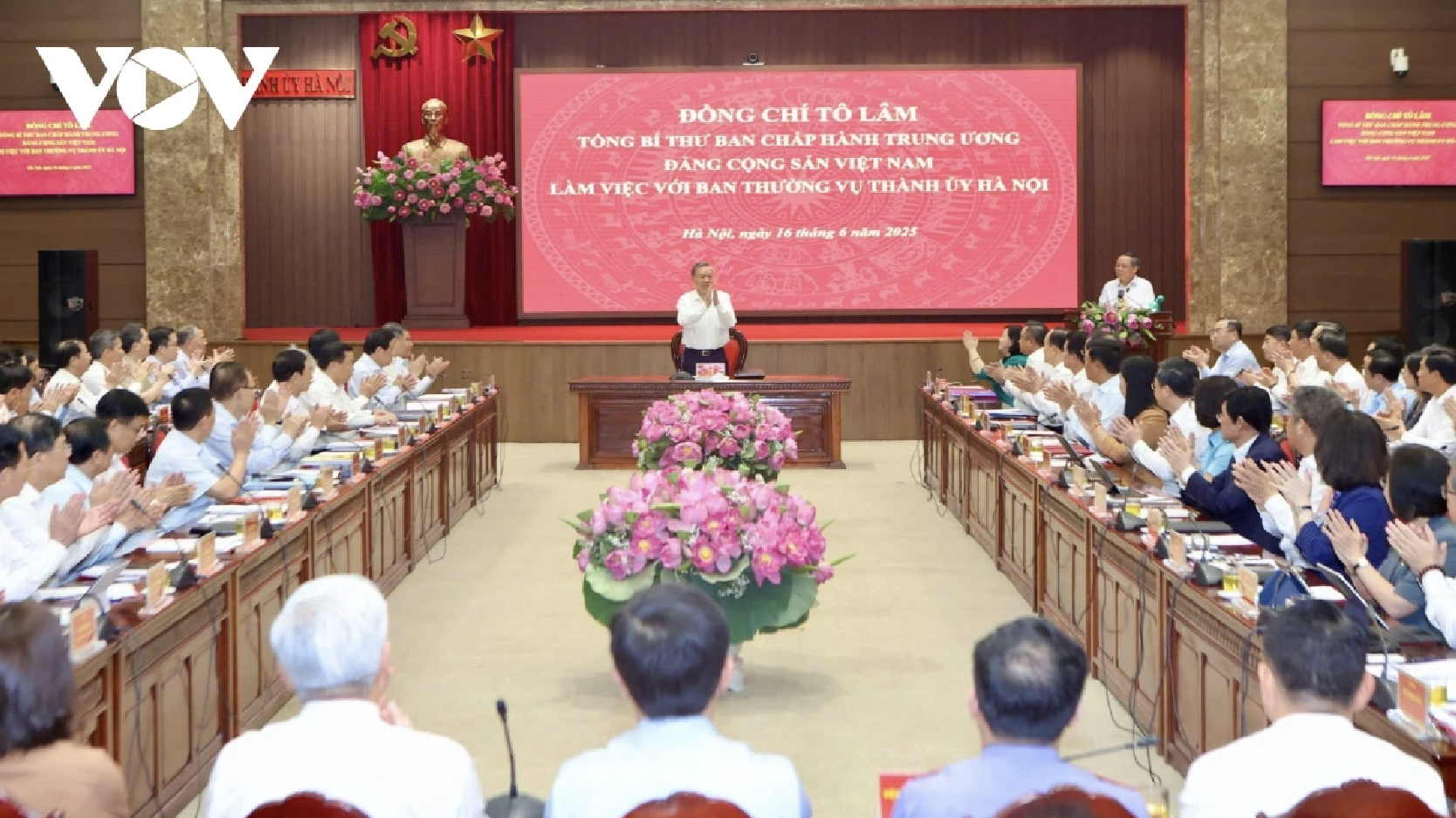 TCVM - Sáng 16/6, tại Hà Nội, Tổng Bí thư Tô Lâm chủ trì làm việc với Ban Thường vụ Thành ủy Hà Nội.