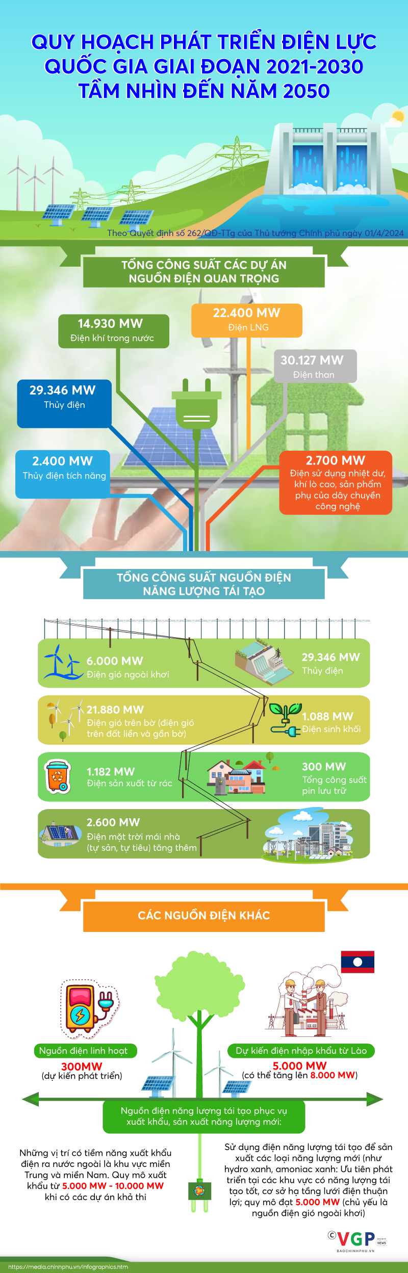 TCVM - Chính phủ ban hành Quyết định số 262/QĐ-TTg về việc phê duyệt Kế hoạch thực hiện Quy hoạch phát triển điện lực quốc gia thời kỳ 2021 - 2030.