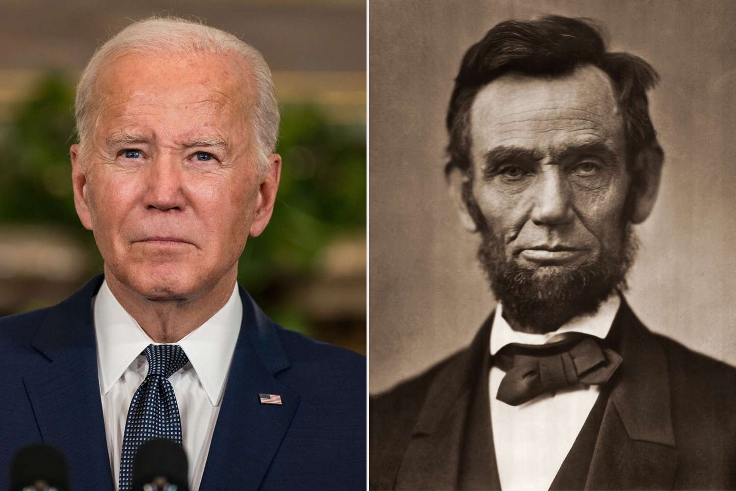 Tổng thống đương nhiệm Joe Biden (bên trái) và Cựu Tổng thống Abraham Lincoln
