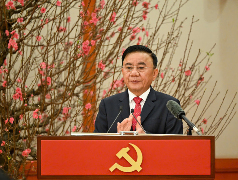 Trao tặng Huy hiệu 45 năm tuổi đảng và tặng hoa chúc mừng đồng chí Tổng Bí thư Tô Lâm, Thường trực Ban Bí thư Trần Cẩm Tú nhấn mạnh, việc trao tặng Huy hiệu đảng là sự kiện có ý nghĩa đặc biệt, ghi nhận chặng đường gần nửa thế kỷ phấn đấu, rèn luyện và cống hiến không mệt mỏi của đồng chí Tổng Bí thư Tô Lâm cho sự nghiệp cách mạng của Đảng và dân tộc.
